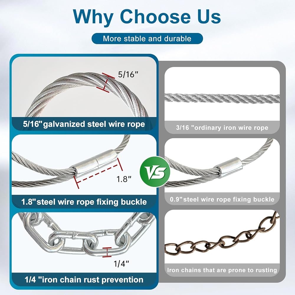 Unmatched Durability: The thick 8mm galvanized aircraft cable and reinforced thimbles withstand over 5,000 lbs of force, outlasting and outperforming flimsier tools.