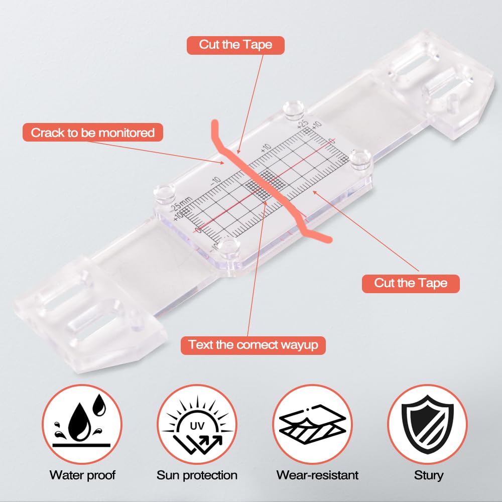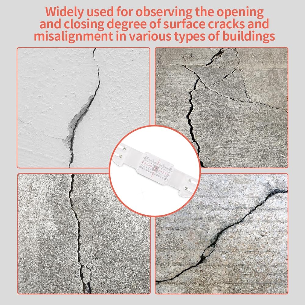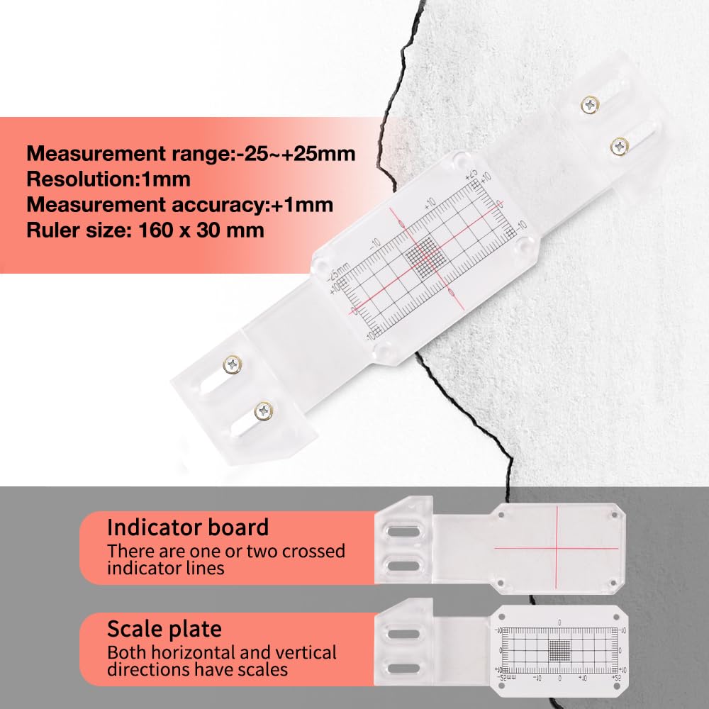 Our Professional Crack Monitoring Gauge delivers precision and reliability for tracking structural cracks in walls and corners. The tool features two overlapping plates—a calibrated bottom plate in millimeters and a transparent top plate with a crosshair cursor—enabling accurate measurements within ±0.5 mm (±0.02"). With a horizontal range of ±20 mm and vertical range of ±10 mm, it supports detailed, long-term crack evolution analysis. The redesigned fixing column enables glue-free installation, and the high-polymer construction ensures durability. Includes a crack record sheet, screws, adhesive, and instructions for immediate use. Trusted by engineers and DIY enthusiasts for effective structural assessment.
