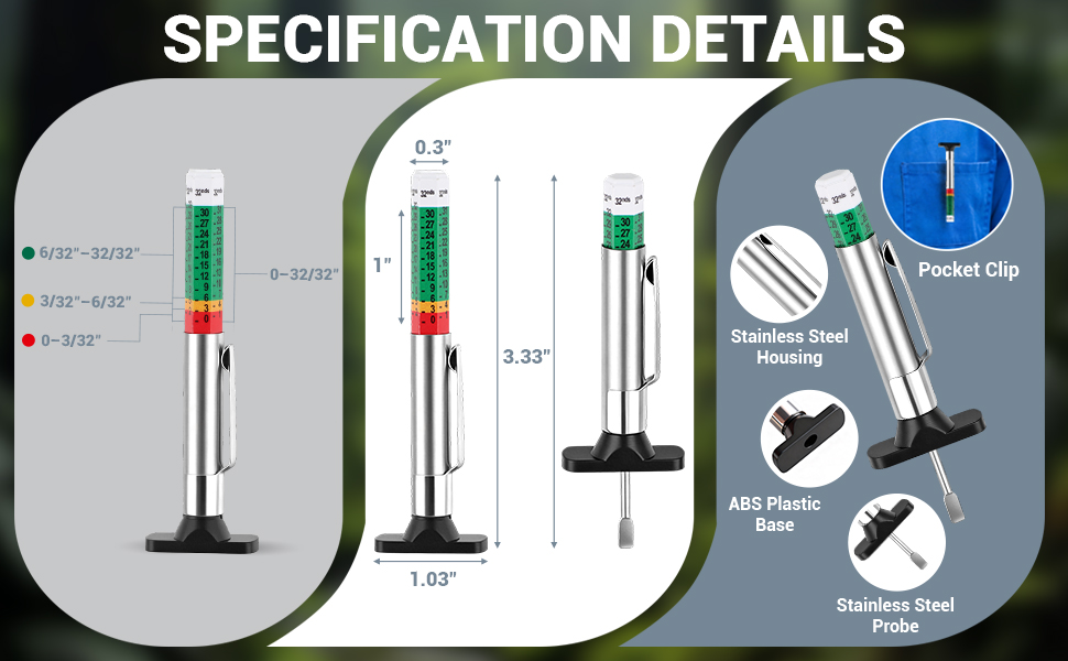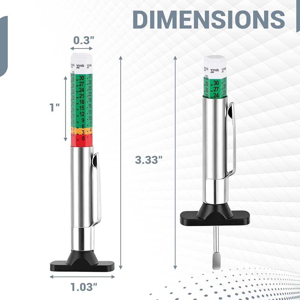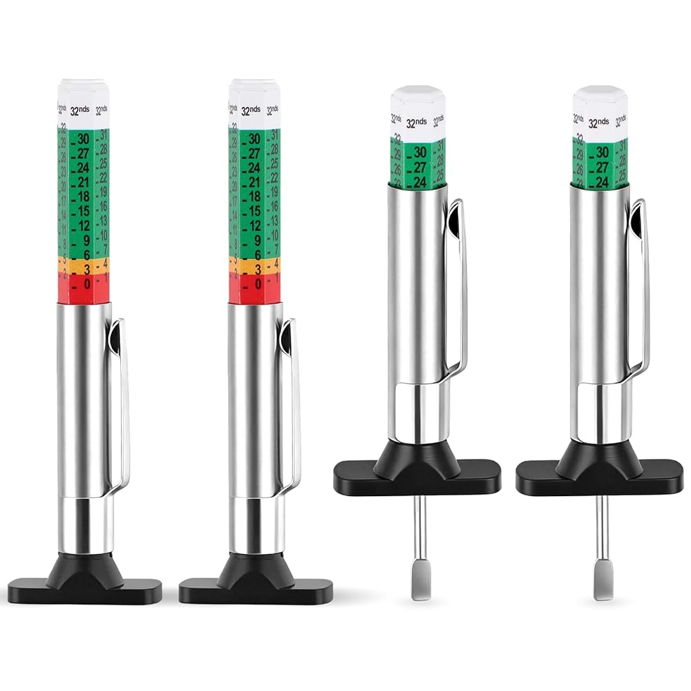 حزمة قيمة: تتضمن 4 مقاييس عمق مداس الإطارات مقاسة بـ 32 ثانية، مما يوفر وحدات متعددة للمركبات المختلفة أو الاستبدالات المريحة