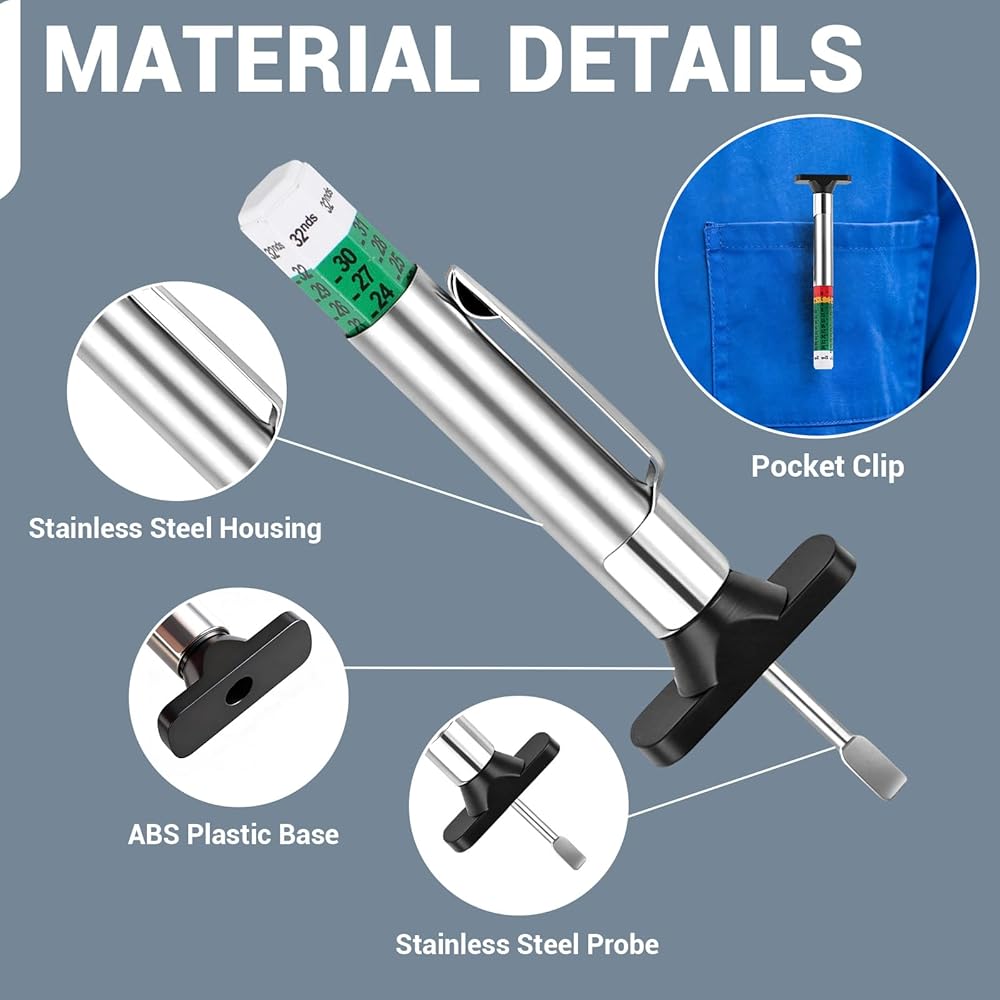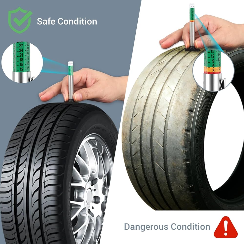 فحص سريع ومريح: تحقق من عمق مداس الإطار في 3 ثوانٍ باستخدام مقياس عمق مداس الإطار المدمج والمحمول الذي يمكن ربطه بسهولة بحقائب الظهر ويناسب حجرات القفازات، مما يسمح لك بفحص إطاراتك في أي وقت وفي أي مكان.