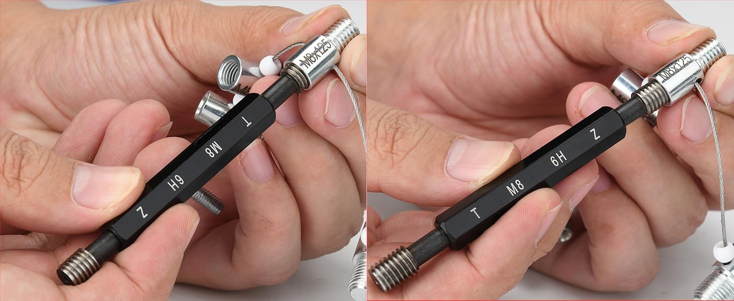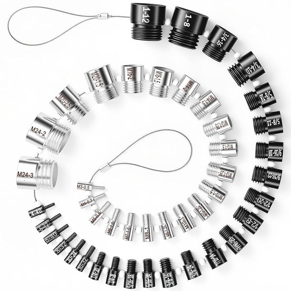 【فحص فعال لخيوط الصواميل والمسامير】جهاز فحص الخيوط القياسي والمتري الخاص بنا هو أداة احترافية مجهزة بـ 45 مقياس خيط، بما في ذلك مقاس 24 بوصة و21 مقاس متري. يساعدك مدقق الخيوط على تحديد أبعاد البراغي والمسامير والصواميل بسرعة ودقة، مما يعزز كفاءة العمل.