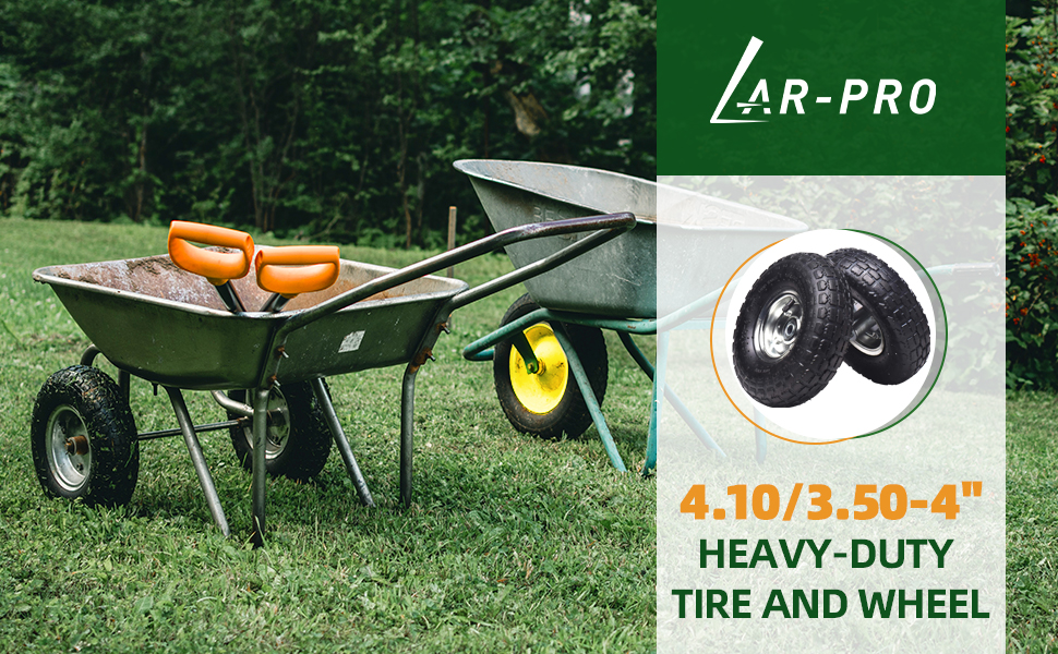 AR-PRO (عبوتان) 4.10/3.50-4 إطار وعجلة، إطارات هوائية بديلة عجلة 10 بوصة مع محامل 5/8 بوصة ومركز إزاحة 2.2 بوصة، متوافقة مع الشاحنة اليدوية وعربة اليد والعربة وعربات الغوريلا