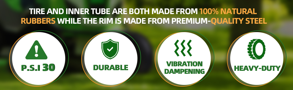 • مطاط فاخر وسعة تحميل عالية التحمل: مصنوع من مطاط طبيعي عالي الجودة مع دعم الأنبوب الداخلي لعمر خدمة طويل. يدعم كل إطار هوائي مقاس 4.10 3.50-4 ما يصل إلى 300 رطل، مما يوفر امتصاصًا فائقًا للصدمات والثبات والراحة على التضاريس المتعددة.