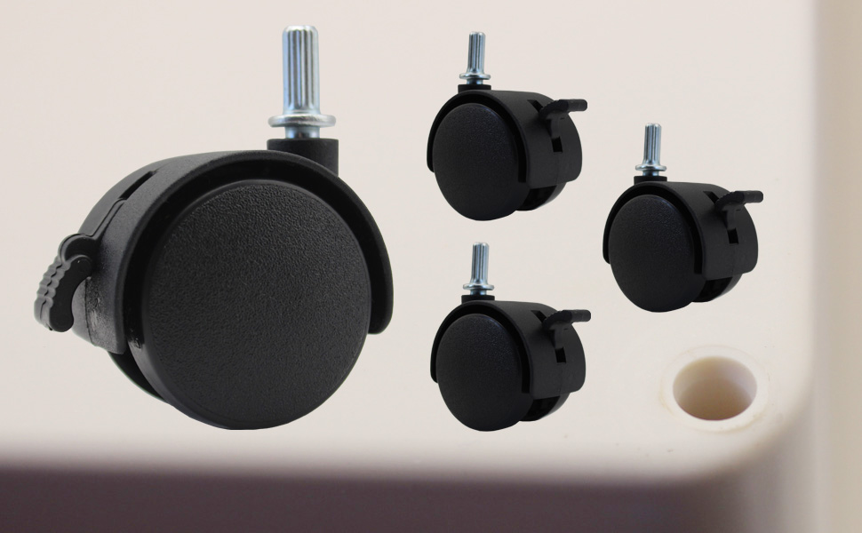 3. بمجرد التأكد من أن نوع وحجم جذع العجلات الخاص بنا قابلان للاستبدال أو الاستخدام بنفسك، ستحصل على 4 قطع عجلات دوارة مقاس 1.5 بوصة مع فرامل قفل للتحكم المرن في دوران العجلة ووقوفها. يمكن لهذه العجلات الصغيرة أن تساعد في تحميل الأشياء التي يبلغ وزنها 130 رطلاً.