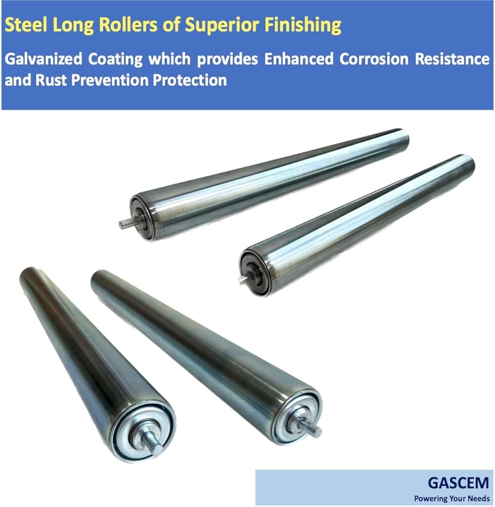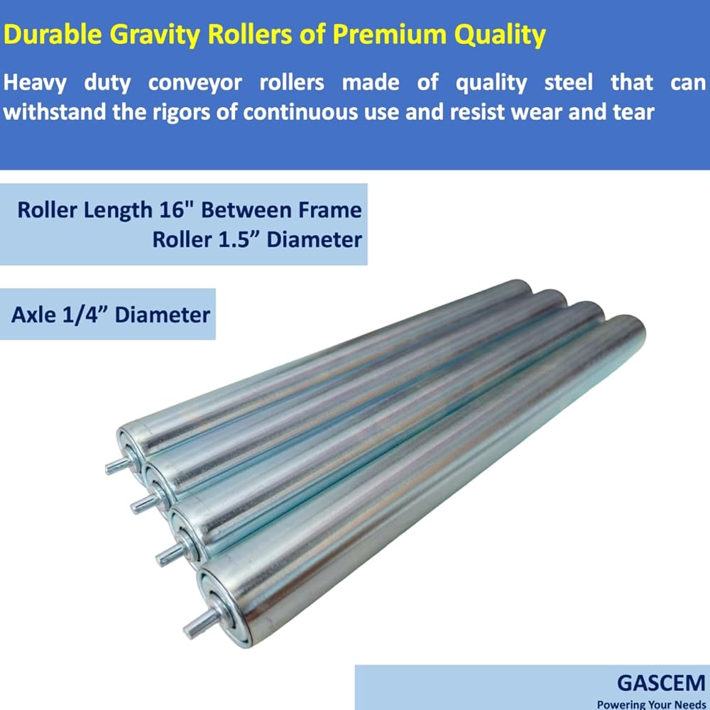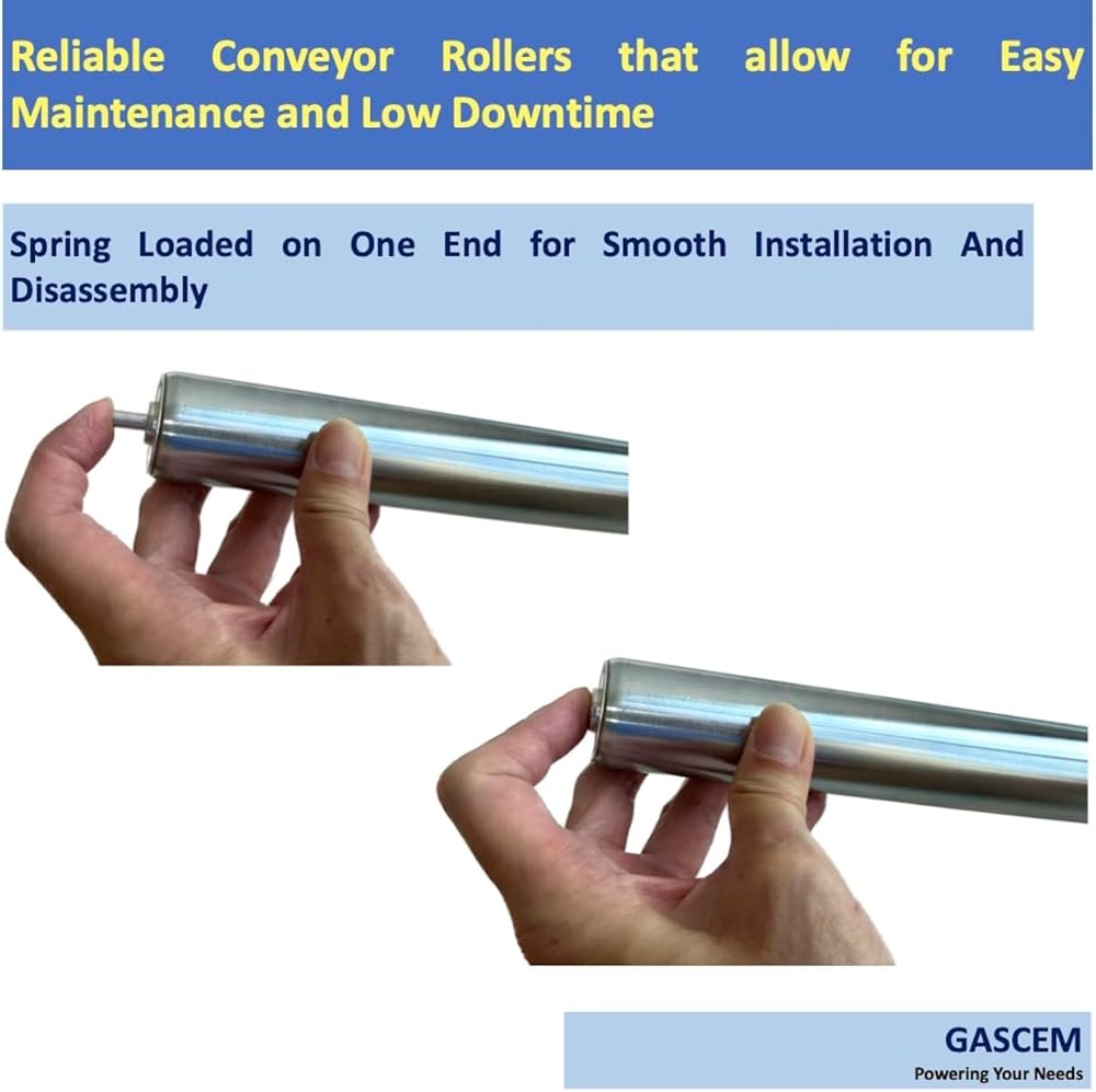 البعد: (أ) الأسطوانة الفولاذية المجلفنة - القطر (Ø) 1.5 بوصة، الطول 16 بوصة بين الإطار (BF) I (ب) المحور الفولاذي المجلفن - القطر 1/4 بوصة. تسمح بكرات Gascem بسهولة الصيانة ووقت التوقف المنخفض مع آلية محملة بنابض للتركيب والتفكيك السريع لنظام الناقل الأسطواني الخاص بك.