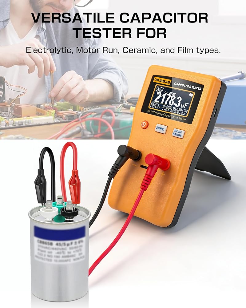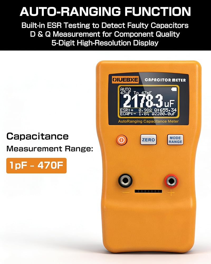 Ultra-Wide Measurement Range – Supports an extensive capacitance testing range from 0.01pF up to 470F, covering tiny signal capacitors to large power capacitors for versatile electronic testing and diagnostics.