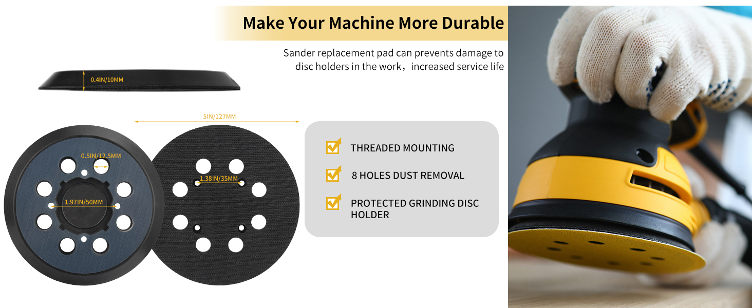 حجم المواصفات: تحتوي وسادة الصنفرة المدارية البديلة مقاس 5 بوصات على 4 فتحات براغي و8 فتحات غبار، والمسافة المركزية لفتحات البراغي غير المجاورة هي 1.97 بوصة / 50 مم، والمسافة المركزية لفتحات البراغي المجاورة هي 1.38 بوصة /35 مم، يرجى التأكد من حجم جهازك قبل الشراء