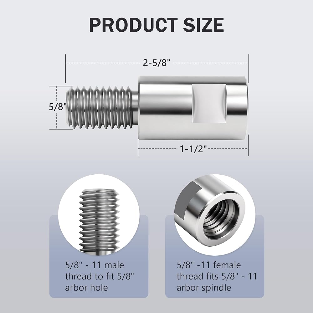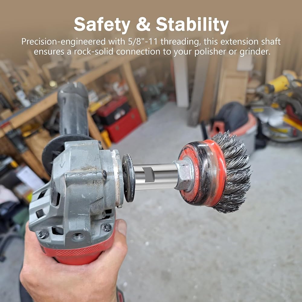 【السلامة والثبات】تم تصميم عمود التمديد هذا بدقة بخيوط 5/8 بوصة - 11، مما يضمن اتصالًا قويًا بجهاز التلميع أو المطحنة. يحافظ العمود المتوازن على سرعة ثابتة ويقلل من الاهتزازات، مما يعزز جودة التلميع بشكل كبير بينما يمنحك التحكم المطلق والثقة أثناء التشغيل.