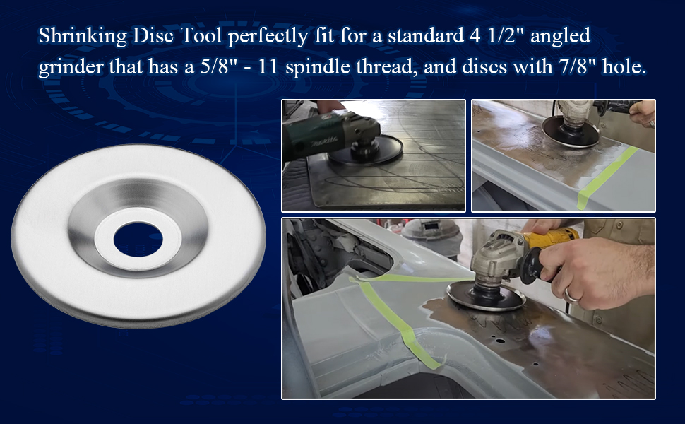 قرص انكماش بقطر 4-1/2 بوصة، سمك 0.55 بوصة (1.4 مم) أداة تصنيع الصفائح المعدنية، إصلاح لوحة الجسم تلقائيًا، تنعيم، مطحنة، تناسب مطحنة زاوية 4-1/2 بوصة، 5/8 بوصة - 11 خيط مغزل، قطعة واحدة