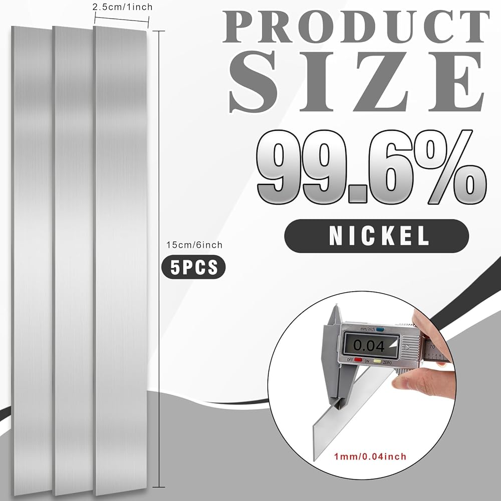 Material dimensions: This high-purity nickel plate measures approximately 0.04 x 1 x 6 inches / 1 x 25 x 150 millimeters, with superior quality. It can maintain its shape and appearance even under high-temperature conditions.