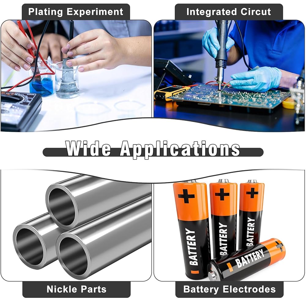 Vivid scientific experiments: This nickel plate can be used to conduct interesting scientific experiments, making them interactive and enjoyable. It can also meet the needs of DIY enthusiasts, electronic engineers and battery manufacturers.