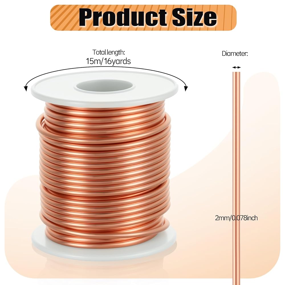 Copper Wire Size: Our 12-gauge 99.9% pure copper wire has a 2mm diameter, is 49.3 feet/15 meters long, and weighs 1 lb per roll. It can be trimmed to any length. Our high-quality, soft copper wire craft wire is ideal for jewelry making. We offer high-quality bare copper wire at an affordable price to meet all your crafting needs