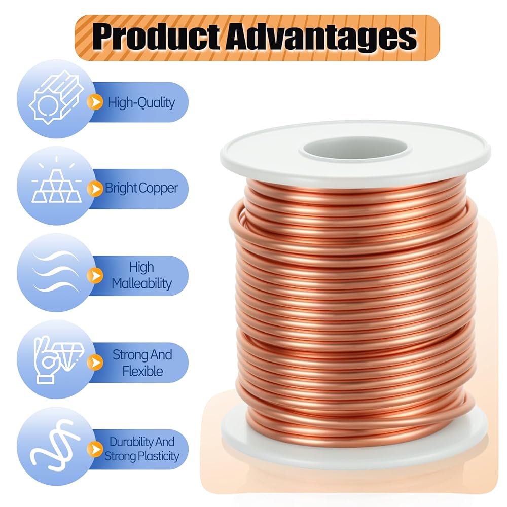 Premium Pure Copper: spool pure copper wire is made of 99.9% pure copper. It has no insulation for ease of use and no coating for excellent conductivity and corrosion resistance. The soft, shiny copper wire dissipates heat more efficiently into the surrounding air, helping to prevent local overheating and improving safety