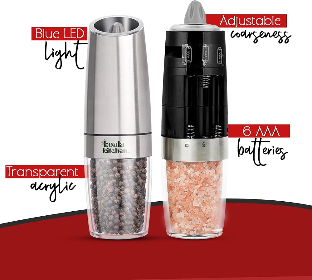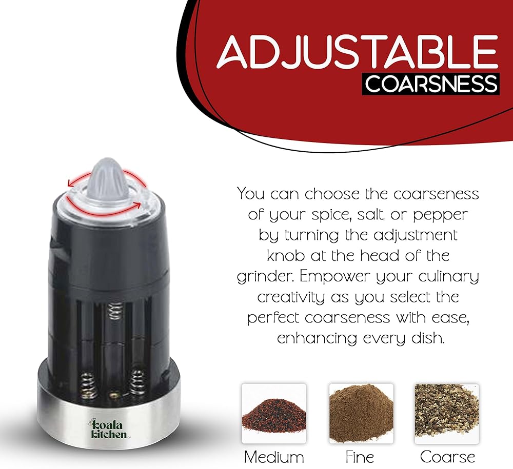 • فصل سهل بيد واحدة، انسَ اللف اليدوي. تقوم هذه المطاحن التي تعمل بالجاذبية بتوزيع التوابل الطازجة على الفور عند قلبها، وهي مثالية للتعامل مع اللحوم النيئة بيد واحدة والتتبيل باليد الأخرى. يتميز بخشونة قابلة للتعديل وإضاءة LED زرقاء لتتبيل دقيق أثناء حفلات الشواء المسائية. (ملاحظة: تتطلب بطاريات AAA، غير متضمنة).