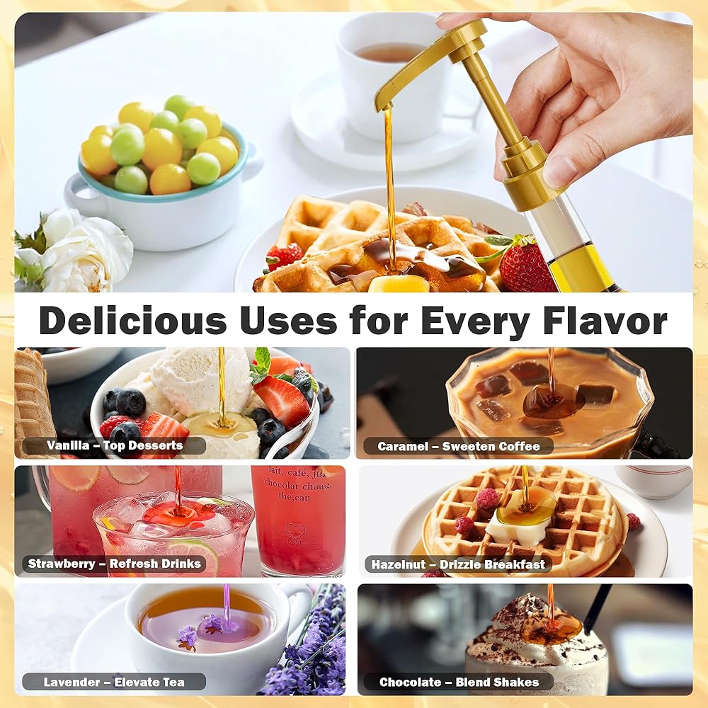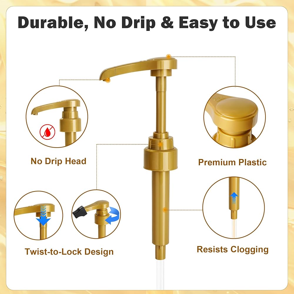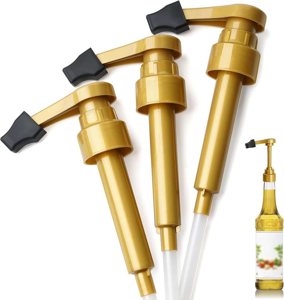 This 3-pack coffee syrup pump set is compatible with Monin 750 ml glass syrup bottles, offering a snug and accurate placement for consistent portion control. Each pump dispenses approximately ¼ oz (8 ml) per press — ideal for coffee drinks, cocktails, smoothies, and more, with ease and precision. Made from durable, sturdy plastic, these pumps feature a no-drip head, a locking mechanism for transport, and a snug fit on 25.4 oz syrup bottles for flavors such as French Vanilla, Hazelnut, Blueberry, Strawberry, and Rose. Ideal for home coffee stations, drink bars, or food service settings, these versatile pumps offer convenient dispensing for a wide range of flavored liquids. Whether you're adding vanilla syrup to lattes or drizzling sauces over desserts, they help elevate your kitchen or beverage setup with practical function and controlled use.