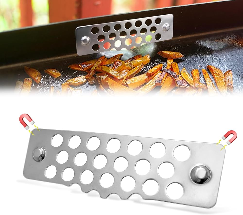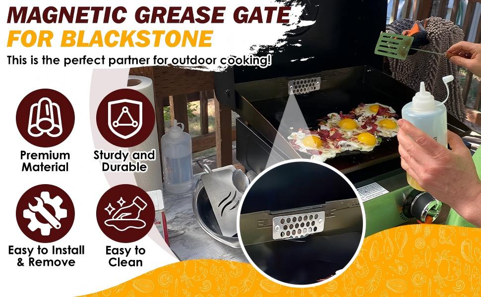 بوابة الشحوم لملحقات شواية بلاكستون، تمنع الطعام من السقوط في مصيدة الشحوم الخلفية، متوافقة مع ملحقات شواية بلاكستون، تصميم 304 من الفولاذ المقاوم للصدأ والمغناطيسي، مقاومة للحرارة