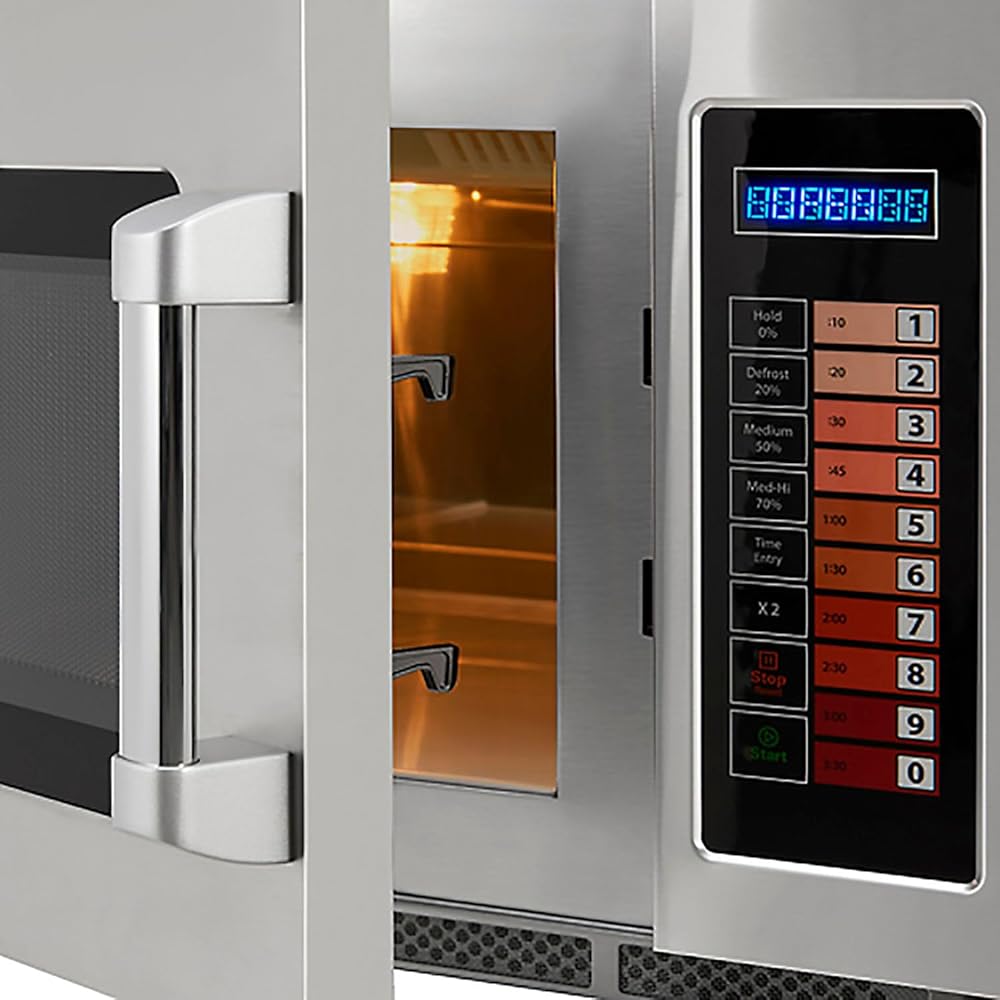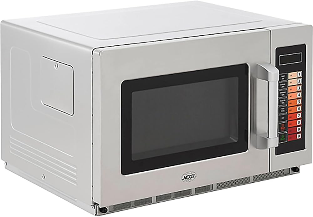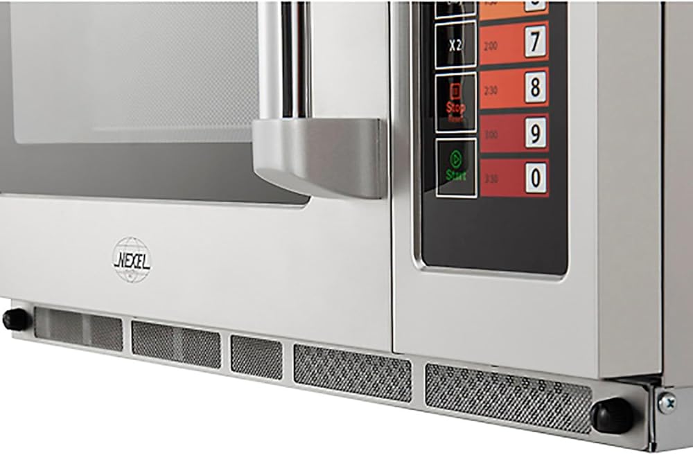 Up to 100 programable settings. Accepts large platters up to 14. Top bottom energy feed for even heat distribution. The Nexel Commercial Microwave is a compact, foodheating solution thats built to withstand the demands of mediumduty commercial food service environments. Suitable for commercial kitchens, concession stands, convenience stores, hotel restaurants, supermarkets, dorms, breakrooms, and common rooms. Use it to heat food, beverages, and meals at the simple push of a button, with up to 100 programmable settings, 5 power levels, and 3 cooking stages for specific cooking demands. Convenient userfriendly keypad controls. Cabinet exterior is constructed of a refined stainless steel while the resilient interior oven cavity features convenient lighting, a wide capacity to accommodate platter sizes up to 14, and a cleanable ceiling splatter shield. Unit is stackable. Features. CE, CB, UL, and CUL certifications. Easytoclean stainless steel air intake filterSpecifications. Amperage 20 A. Body Material Stainless Steel. Cabinet Material Stainless Steel. Capacity 1.2 ft. Color Silver. Compartment Depth 161/8 in. Compartment Height 87/8 in.. Compartment Width 143/16 in.. Control Type Keypad. Cord Length 33/16 ft. Depth 2013/16 in.. Door Material SeeThrough Door. Finish Stainless Steel. Handle Type Stainless Steel. Height 141/2 in.. Hertz 60 Hz. Interior Oven Light Yes. Plug Type UL Plug. Timer LED Display. Voltage 120 V. Watts 1200 W. Width 225/8 in.