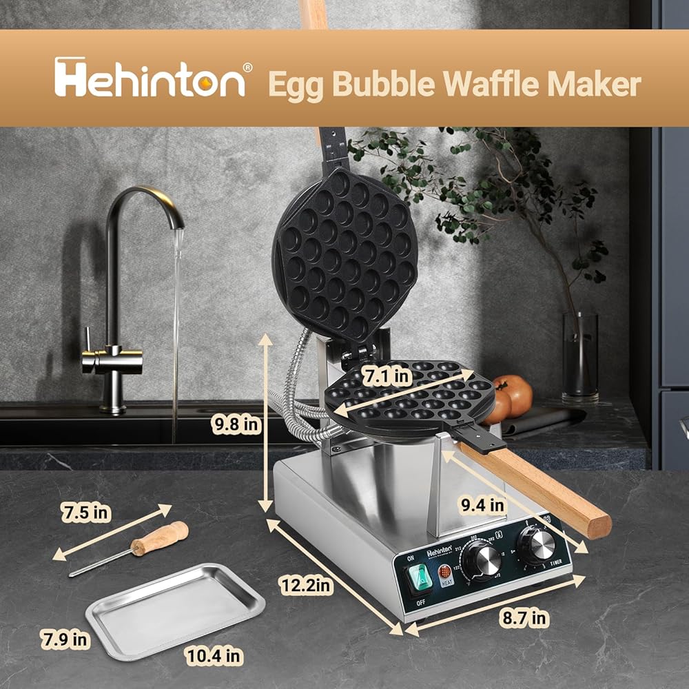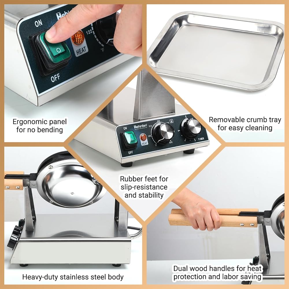 ماكينة صنع الوافل التجارية Hehinton® 110V Pro بقدرة 1400 وات | قاعدة ثابتة مضادة للاهتزاز | مكواة نفخة البيض الدوارة بزاوية 180 درجة | هيكل من الفولاذ المقاوم للصدأ المصقول وطلاء غير لاصق | لوحة التشغيل المريحة