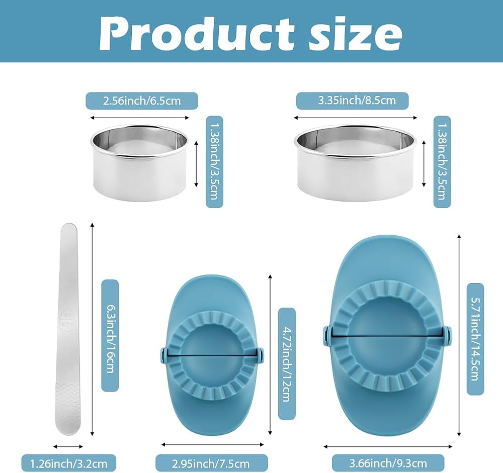 【WHAT YOU GET】You will get 3pcs x dumpling maker(two sizes), 3pcs x dough cutter(two sizes), 1pc x flat spoon.A practical and essential kitchen tool that you deserve.