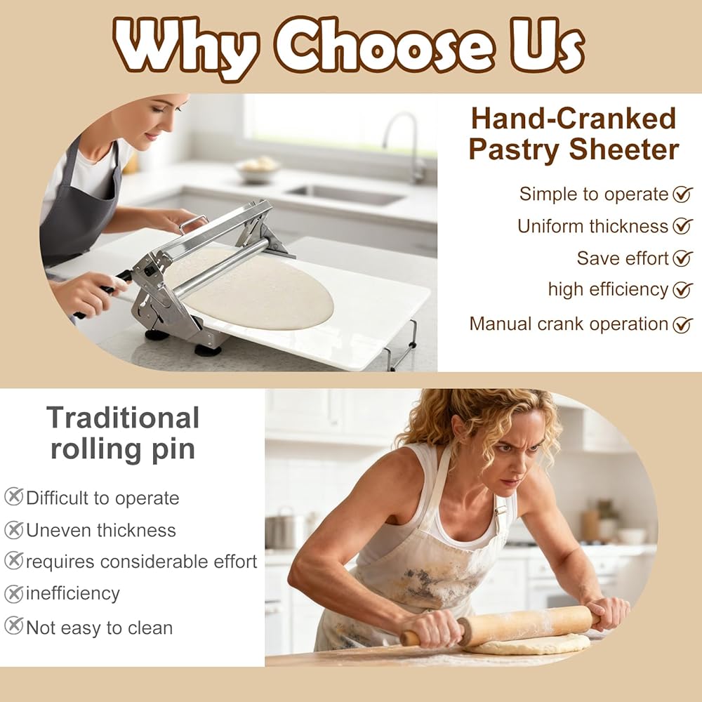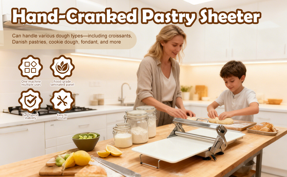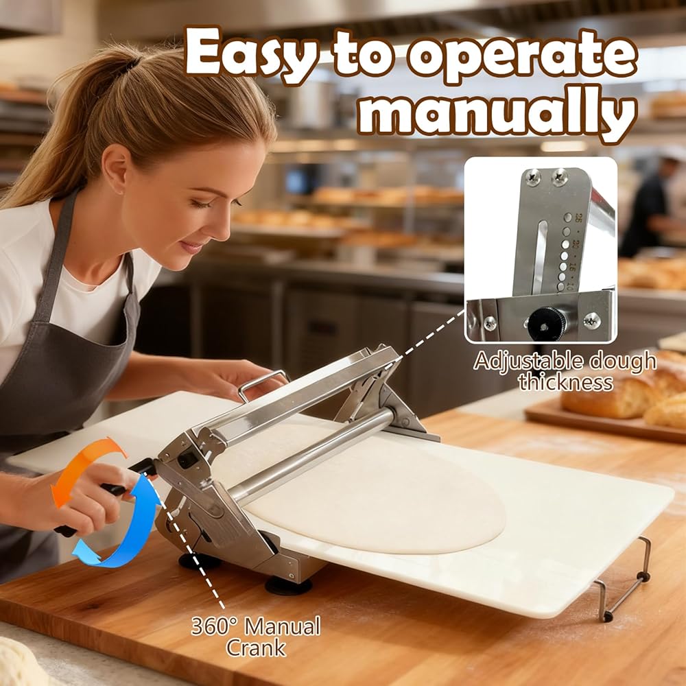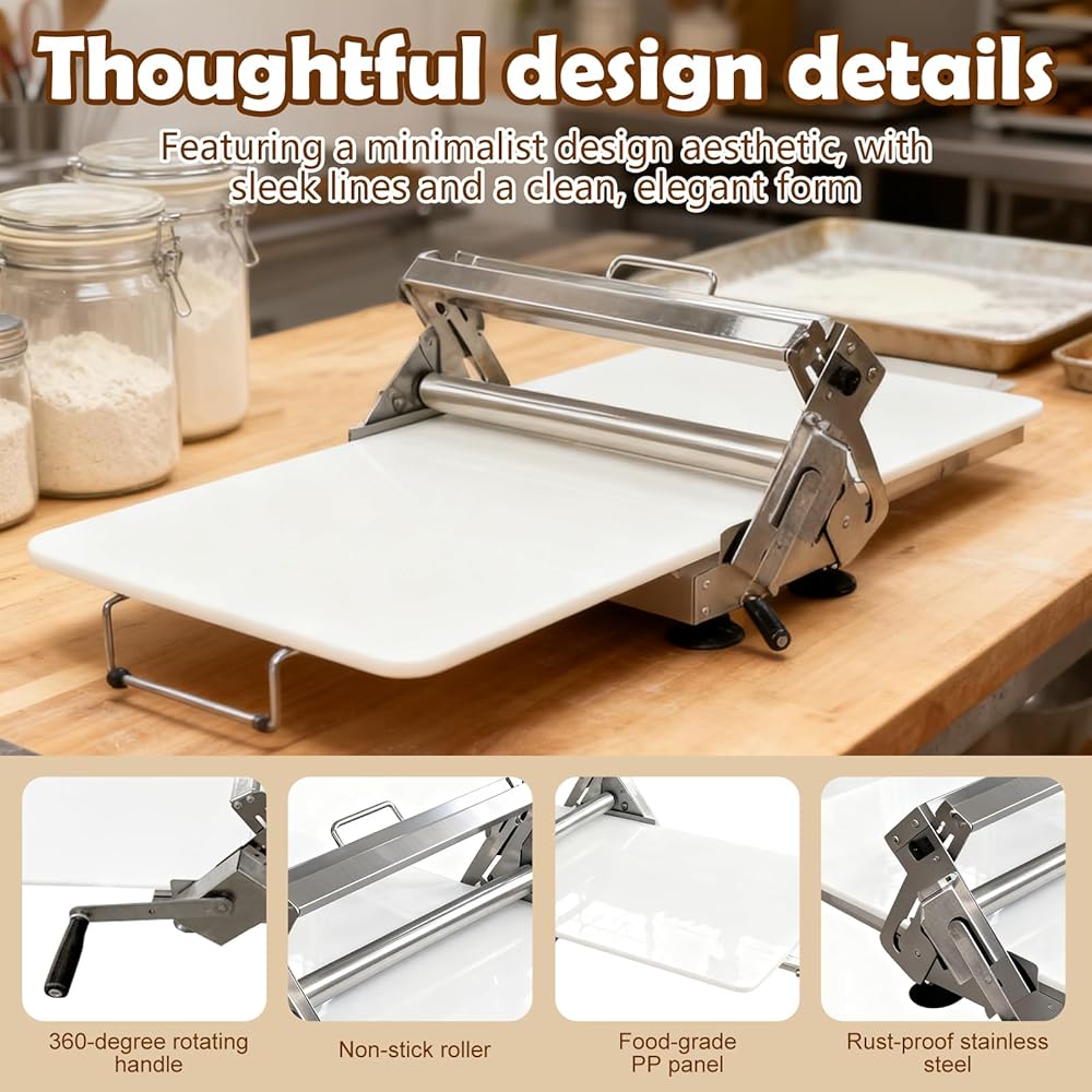 لف العجين بنفسك: أطلق العنان لإبداعك في المعجنات. مثالية للعجين المصفح مثل الكرواسون والمعجنات الدنماركية وعجينة البيتزا والمعجنات المنتفخة، كما أنها تتعامل مع عجينة البسكويت والمعجنات المنتفخة الحلوة والمالحة وعجينة الخبز القصير وعجينة المعكرونة وحتى معجون السكر والفوندان.