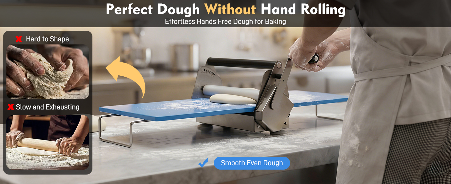 سهولة التنظيف والصيانة المنخفضة: يتيح التصميم القابل للفصل التنظيف السريع بعد كل استخدام. تساعد الأسطح الناعمة غير اللاصقة على منع تراكم العجين، مما يجعل الصيانة اليومية بسيطة وتحافظ على نظافة ورقة العجين وصحتها وجاهزة لجلسة الخبز القادمة!