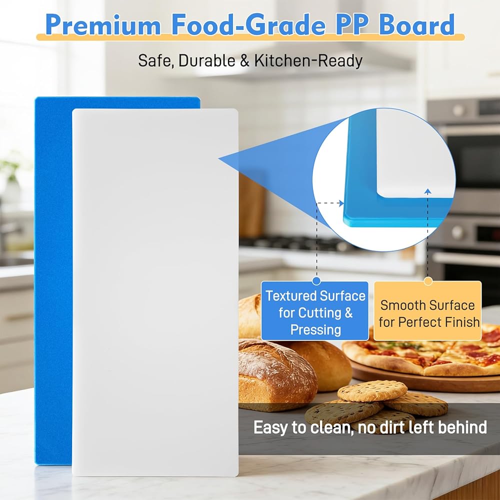 ماكينة فرد العجين اليدوية مع ألواح مزدوجة: تشتمل ماكينة فرد العجين اليدوية هذه على لوحتين كبيرتين مقاس 27.5 × 14 بوصة من البولي إيثيلين، مصنوعة من مادة البولي إيثيلين الآمنة غذائيًا والصديقة للبيئة لاستخدام الخبز الآمن والموثوق. لوح خشن للضغط الأولي ولوح ناعم للتشطيب، مما يجعل دليل فرد العجين هذا مثاليًا لاحتياجات تحضير العجين المختلفة في المنزل!