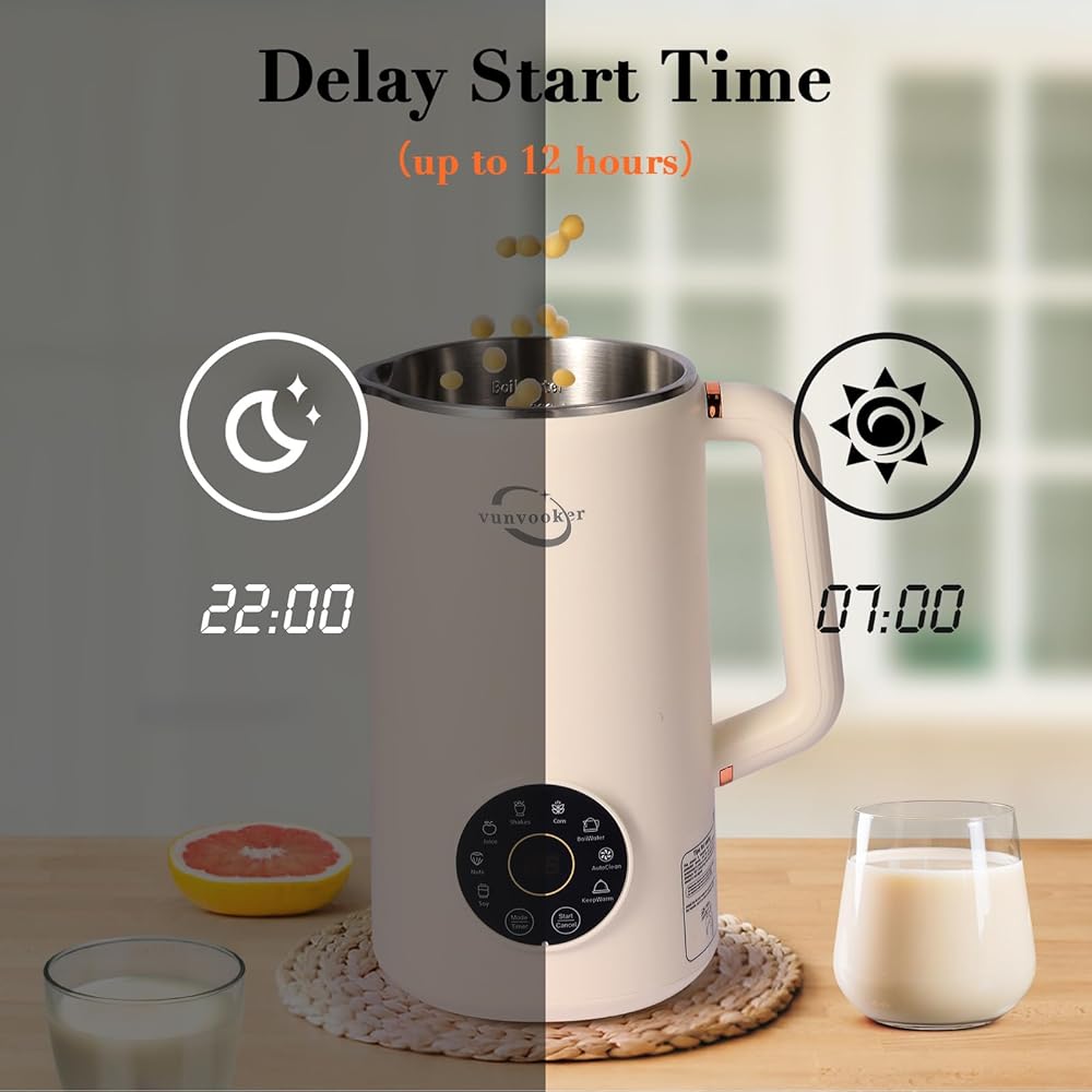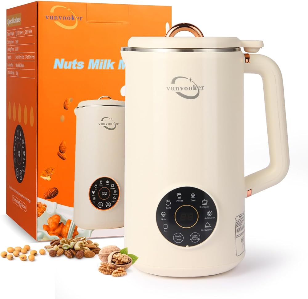 ماكينة صنع حليب الجوز 8 في 1 متعددة الوظائف، 34 أونصة (1000 مل) من الصويا واللوز والشوفان وجوز الهند والمشروبات النباتية وغير الألبان، مع تأخير البدء/الحفاظ على الدفء/ماء الغليان