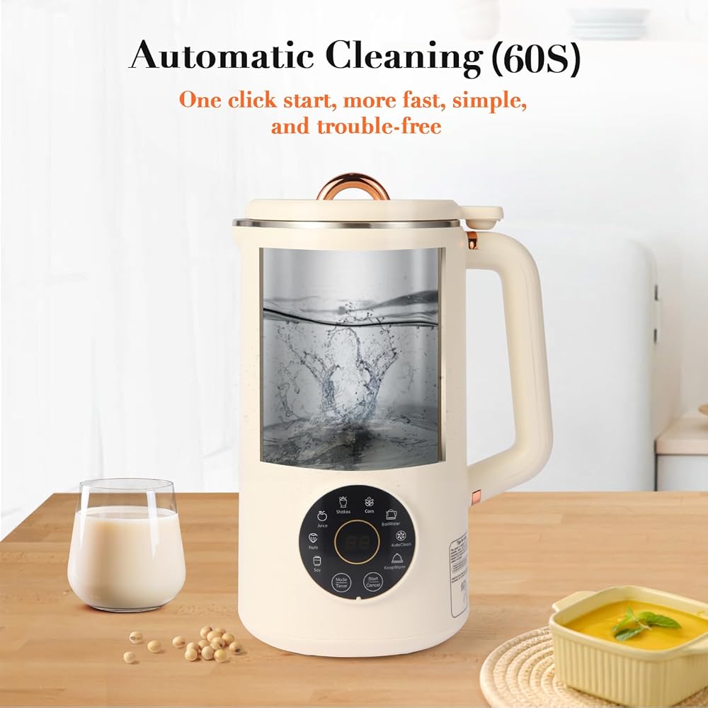 【سهلة الاستخدام والتنظيف التلقائي】تصميم ماكينة صنع الحليب سهل الاستخدام للغاية والتشغيل بسيط للغاية. ما عليك سوى صب كمية مناسبة من المكسرات والماء، ثم تحديد الوظيفة التي تحتاجها، وانقر فوق للبدء. بعد الانتظار لفترة من الوقت، يمكنك الاستمتاع بالحليب. كما أن لديها وظيفة التنظيف التلقائي، والتي يمكن أن تبدأ بنقرة واحدة، مما يجعلها ملائمة للتنظيف اللاحق.