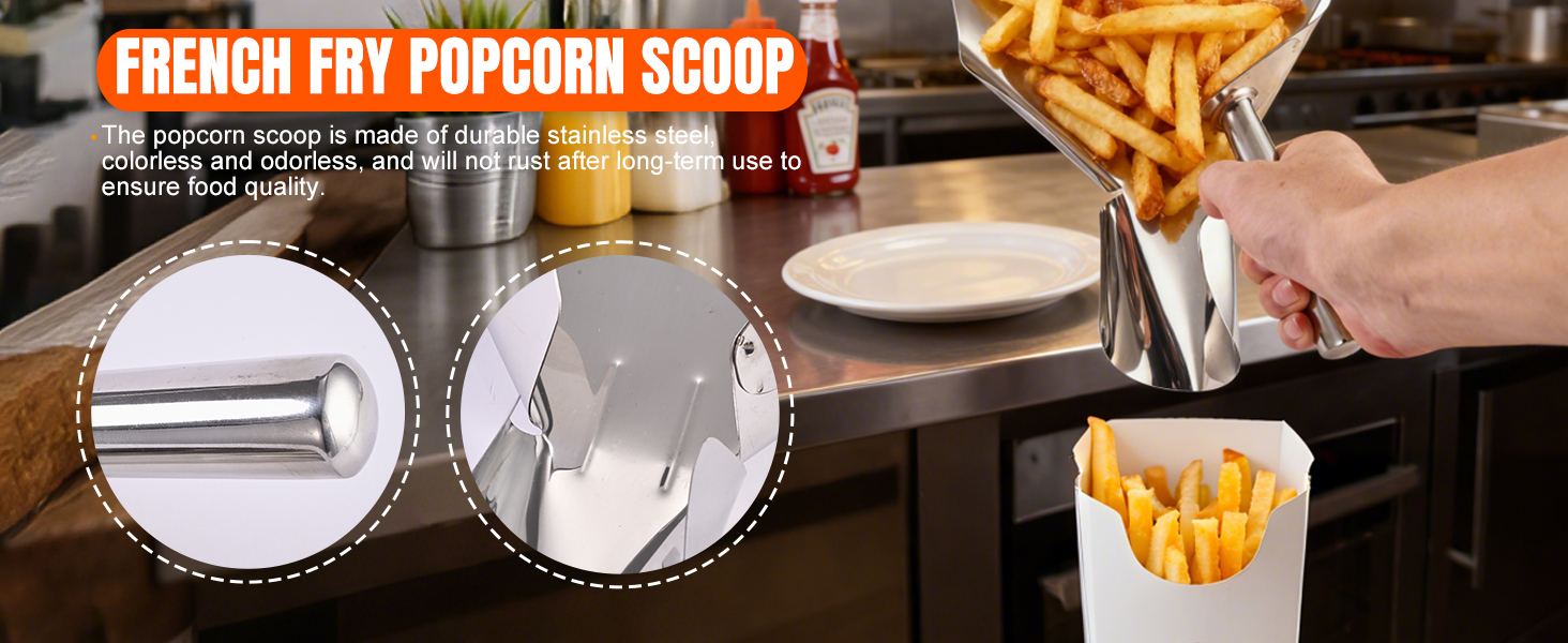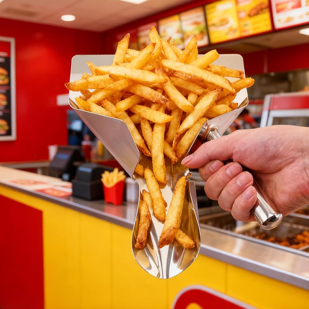 مغرفة الفشار من الفولاذ المقاوم للصدأ، مغرفة القلي الفرنسية، أداة تعبئة سريعة لأكياس أكياس الفشار، مغرفة متعددة الأغراض لآلة الفشار، حلوى الثلج، الوجبات الخفيفة والحلويات