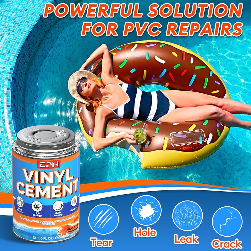 أسمنت فينيل EPN، غراء فينيل عالي القوة، مجموعة إصلاح بطانة حوض السباحة المقاومة للماء للمواد القابلة للنفخ، مرتبة هوائية، حلقة سباحة، خيمة، منزل ترتد، ألعاب قابلة للنفخ، قوارب الكاياك (6 أونصة)
