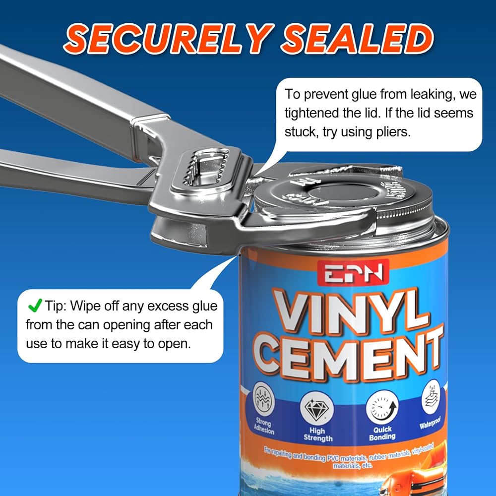 【مجموعة إصلاح قوية للغاية】تم تصميم أسمنت الفينيل EPN خصيصًا من مواد PVC وEVA والمطاط، مما يوفر رابطة متينة لإصلاح الثقوب والتمزقات والشقوق. بمجرد معالجته، فإنه يشكل طبقة لاصقة مرنة ومقاومة للشد مع مقاومة ممتازة للتآكل والماء. مثالية للتطبيقات عالية الأداء مثل المنتجات القابلة للنفخ وبطانات حمامات السباحة والقوارب، فهي تضمن استخدامًا موثوقًا وطويل الأمد.