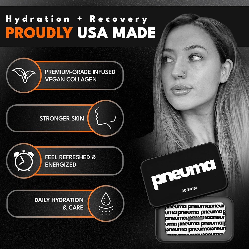 شريط غني بالكولاجين من PNEUMA (30 قطعة) - لاصق لطيف، لا يسبب الحساسية، خالٍ من اللاتكس وإزالة خالية من الألم - كولاجين نباتي، غني بفيتامين E - جودة ممتازة، صنع في الولايات المتحدة الأمريكية