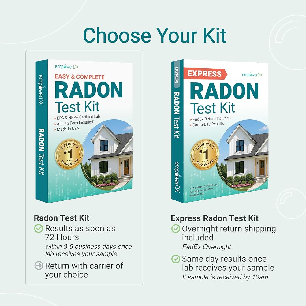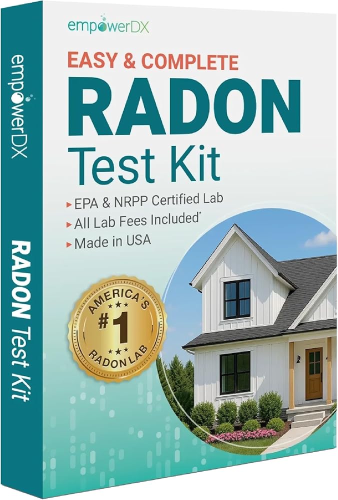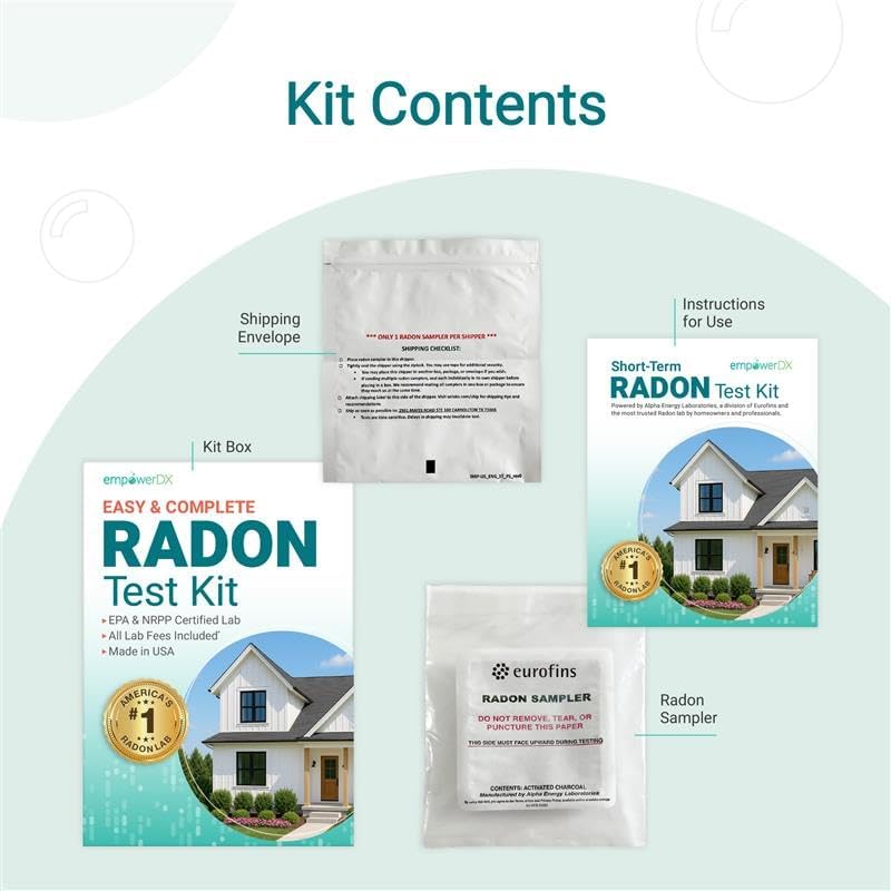مجموعة اختبار الرادون إمبلي دي إكس، مدرجة في قائمة وكالة حماية البيئة (EPA)، معتمدة من NPPR، تحقق من مستويات غاز الرادون في منزلك، النتائج في غضون 3-5 أيام