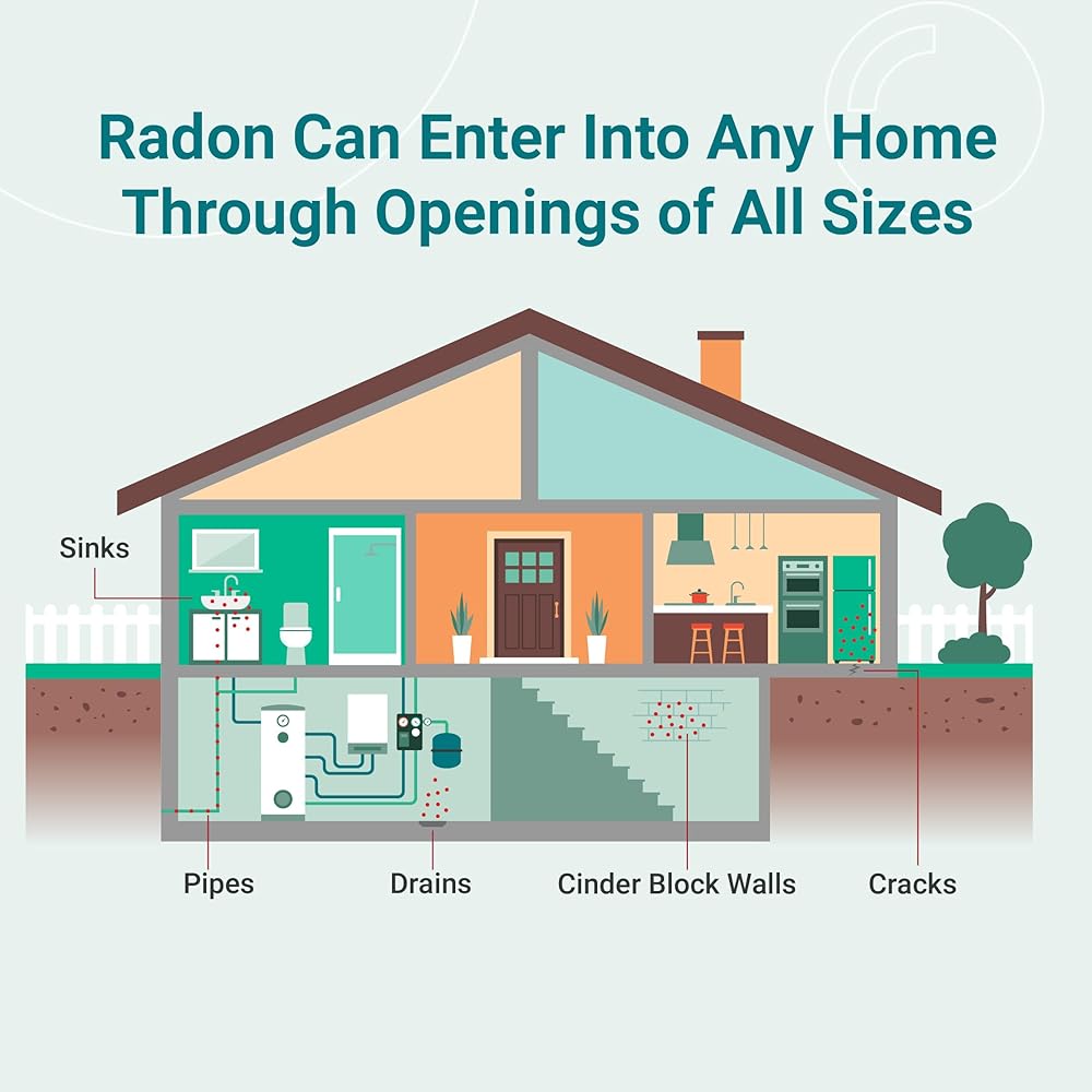 • يمكن للرادون أن يدخل أي منزل - اكتشف تسرب الرادون من خلال الشقوق أو الأنابيب أو المصارف أو الجدران أو الفتحات الأخرى الشائعة في كل منزل.