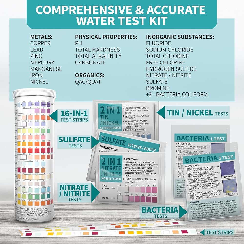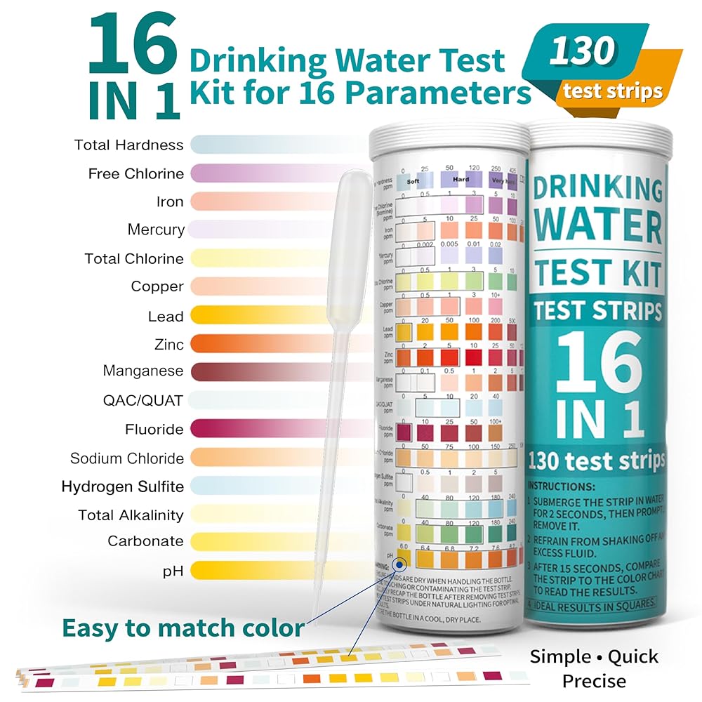 اختبار شامل: يقدم 22 اختبارًا مختلفًا لتقديم تحليل كامل لجودة المياه لديك. يتضمن ذلك اختبارات الرقم الهيدروجيني والصلابة والقلوية والكلور والرصاص والحديد والنحاس والمزيد.