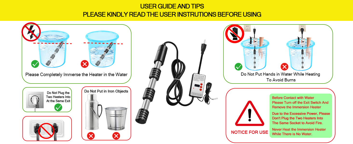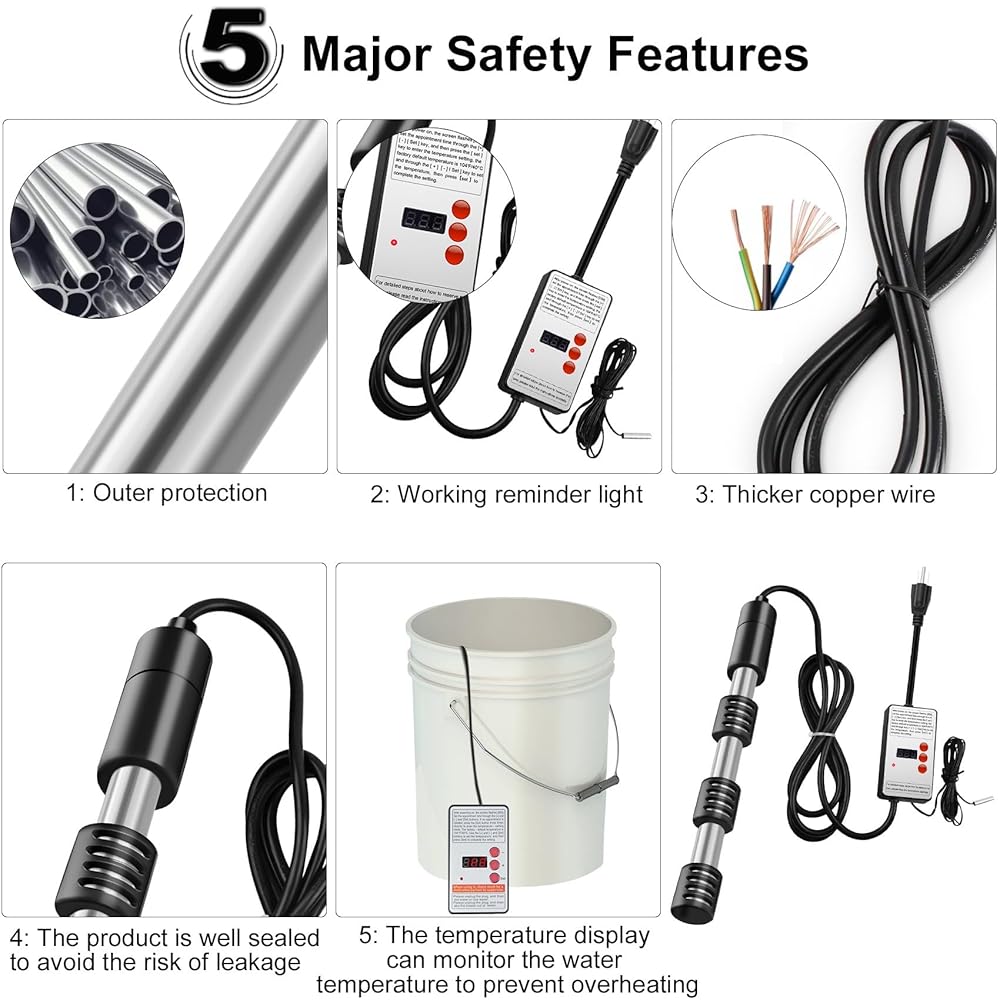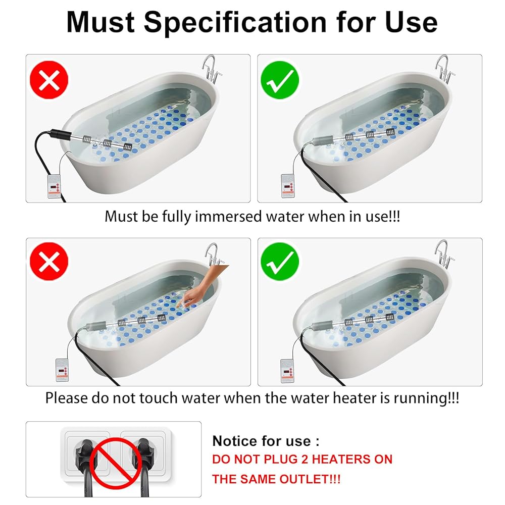 • ⚠️【ميزات السلامة الأساسية - راحة البال في كل استخدام】 تم تصميمها مع الحماية من الحرارة الزائدة والإغلاق التلقائي عند 167 درجة فهرنهايت. يجب أن تكون الوحدة مغمورة بالكامل قبل توصيلها بالكهرباء، ولا تعمل أبدًا وهي جافة. تم تصميمه لمنافذ 110 فولت في الولايات المتحدة، وهو يتضمن تحذيرات واضحة لمنع مخاطر الحريق وضمان التشغيل الآمن في كل مرة.