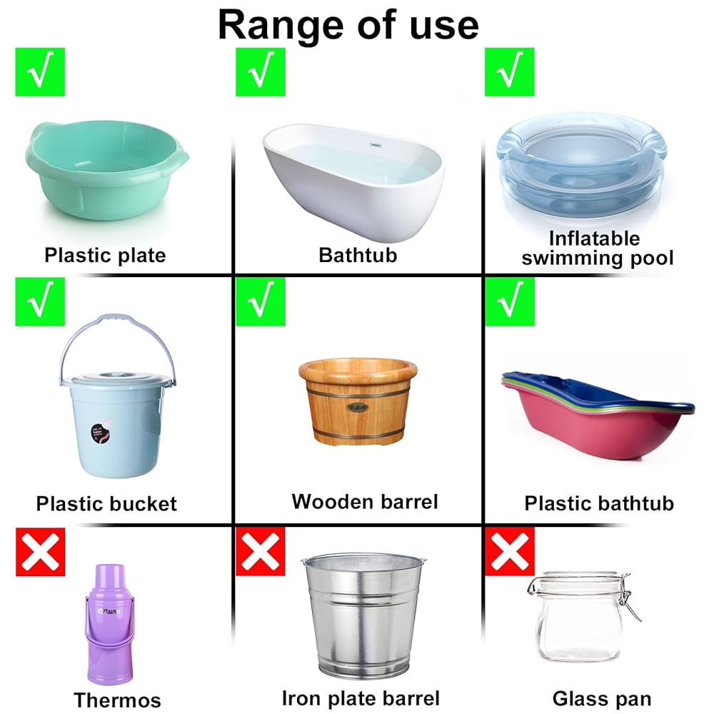 • 🧳【تصميم محمول للغاية ومتعدد الأغراض - استخدمه في أي مكان】 خفيف الوزن وصغير الحجم، سخان المياه هذا هو الحل الأمثل للحصول على الماء الساخن أثناء التنقل. استخدمها في أحواض الغطس الباردة، أو حمامات الحيوانات الأليفة، أو نقع القدم، أو أعمال المزرعة، أو حتى كمدفأة لحمام السباحة للمنتجعات الصحية الصغيرة القابلة للنفخ. إنه الرفيق المثالي للسفر من أجل الراحة.