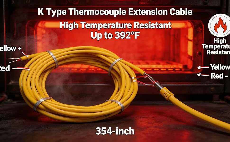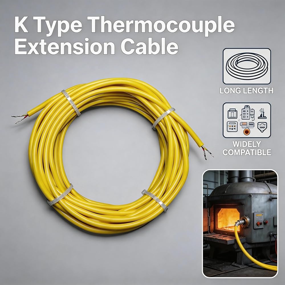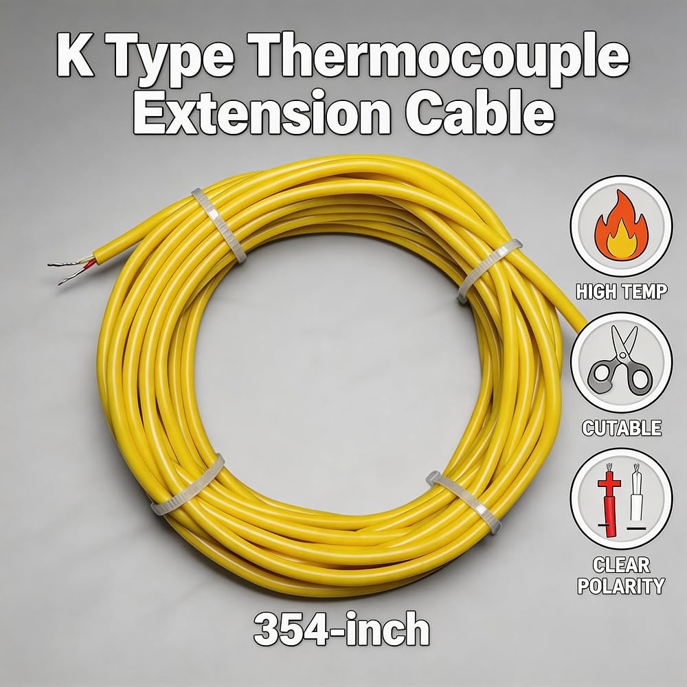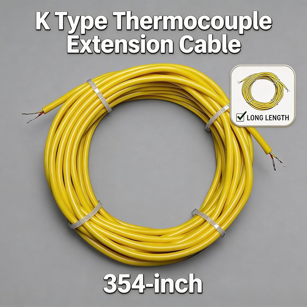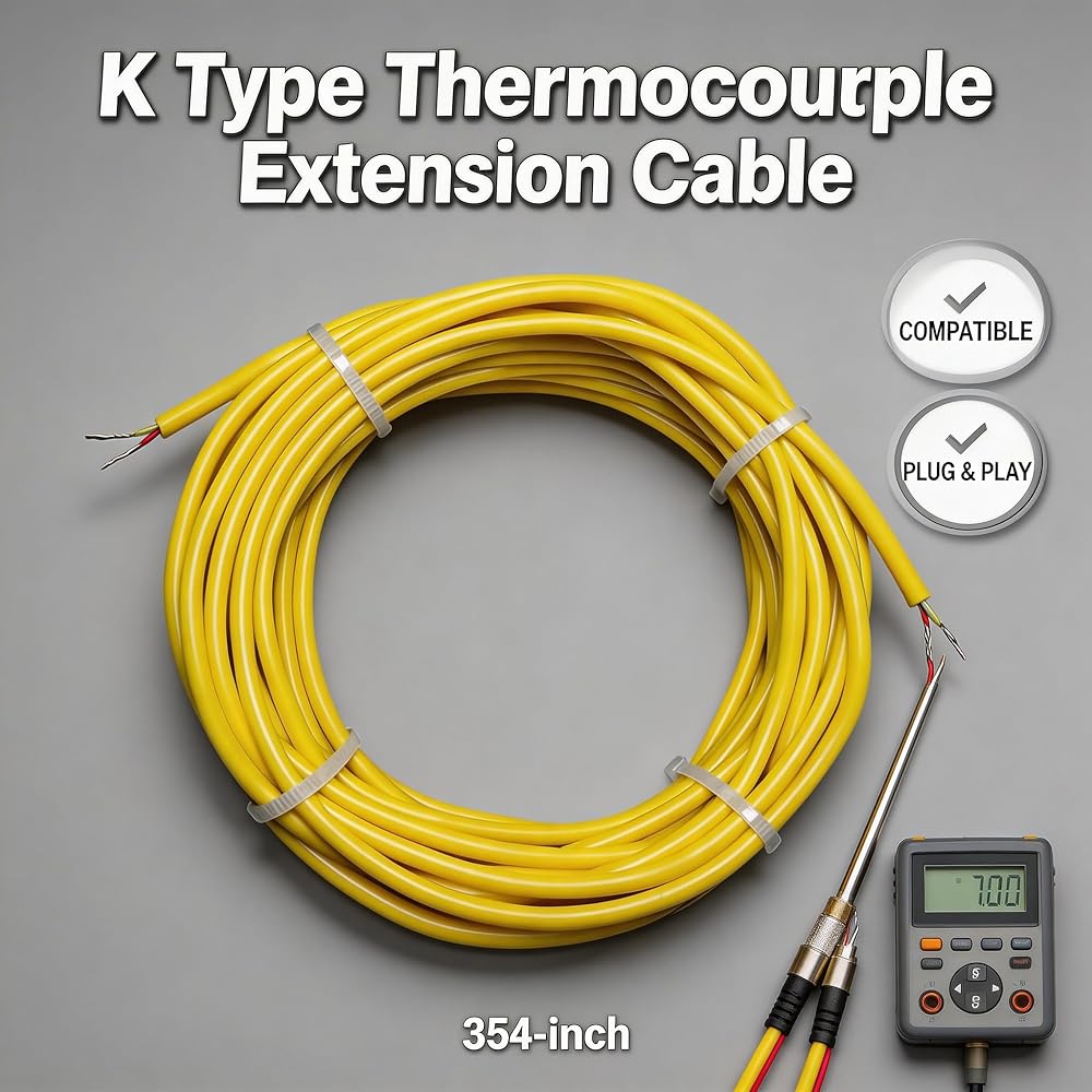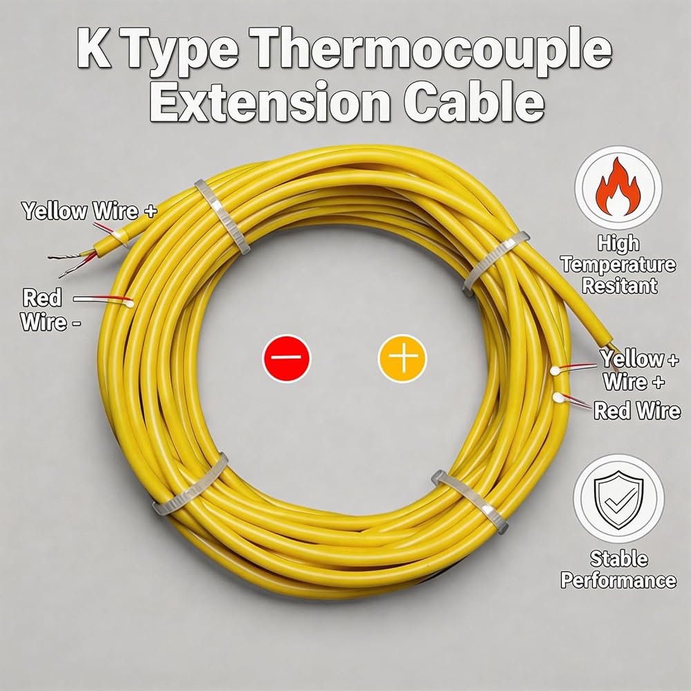 كابل تمديد مزدوج حراري من النوع K: ينقل الإشارات ضمن نطاق درجة حرارة من -50 درجة فهرنهايت إلى 2000 درجة فهرنهايت، مما يجعله مناسبًا لتطبيقات درجات الحرارة العالية مثل الأفران والأفران وأنظمة التدفئة الصناعية