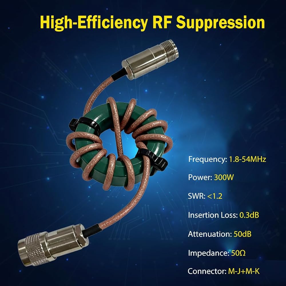 Professional Signal Purity: Covers the full 1.8-54MHz shortwave band with a standard 50Ω impedance for a perfect match with coaxial feedlines. It achieves an ultra-low 0.2dB insertion loss and 50dB common mode attenuation to suppress unwanted noise floor interference