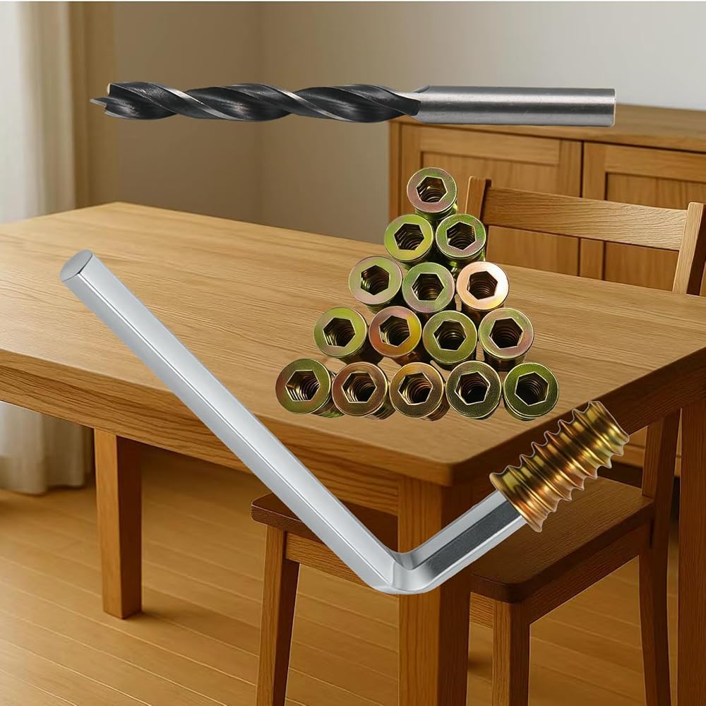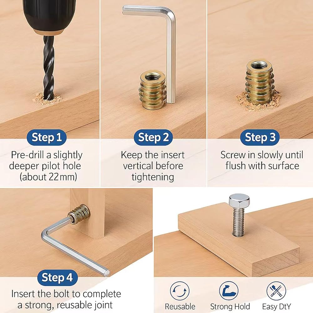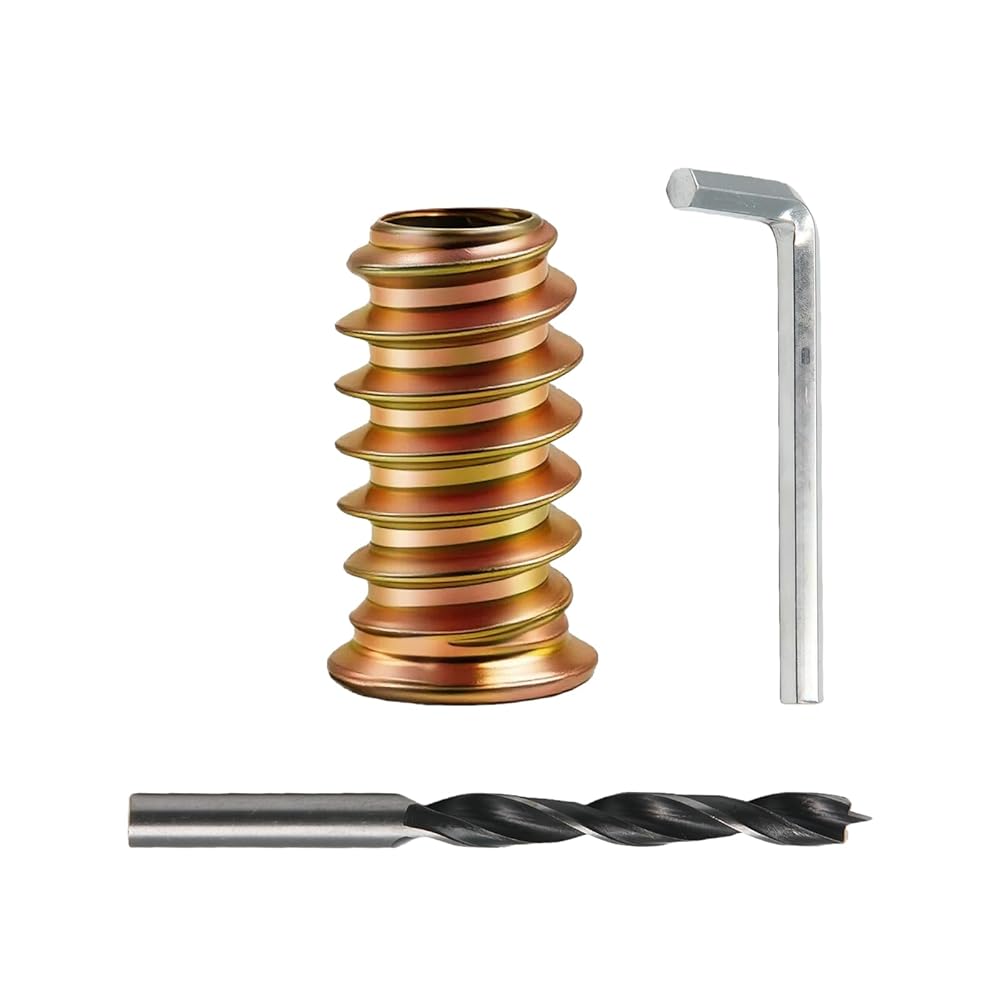 Includes a 8.5mm twist drill bit and 6mm hex spanner for easy and accurate installation. Pre-drill a slightly deeper pilot hole, then screw the insert in place for a firm and stable hold — works well even on hardwood or dense materials