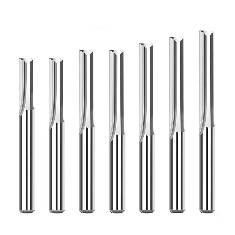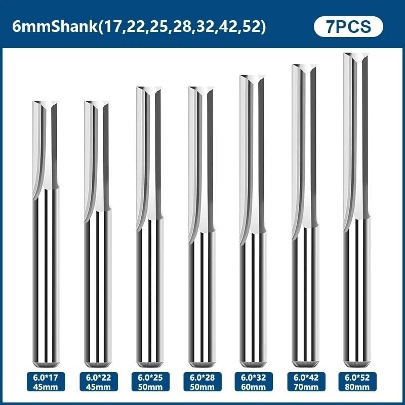 7pcs Double Edged Straight Slot Milling CutterMaterial: CarbideFlute: 2Shank: 6mmPackage Including: 7pcs straight flute end mill