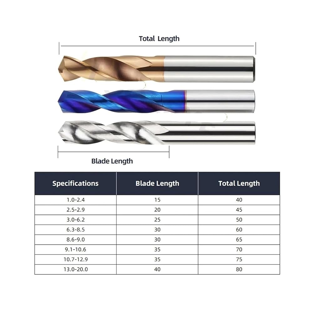 Tooleye Carbide Drill Bits for Hard Metal Tungsten Steel Twist Drill Bit for Metalworking CNC Lathe Drilling Tools 1-20mm