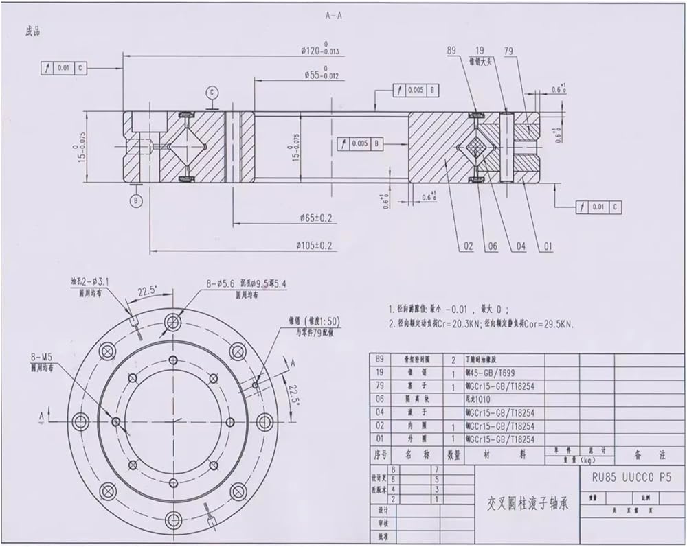 RU85UUCC0 P5 55X120X15MM XRU5515UUCC0 P5 Cross Roller Bearings