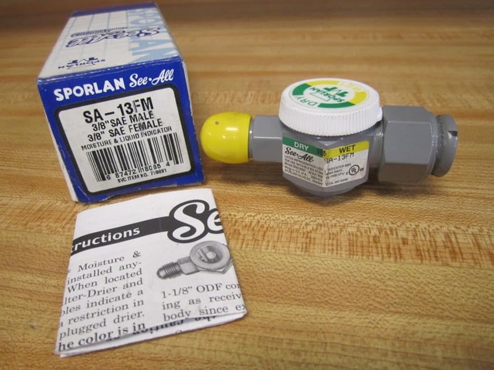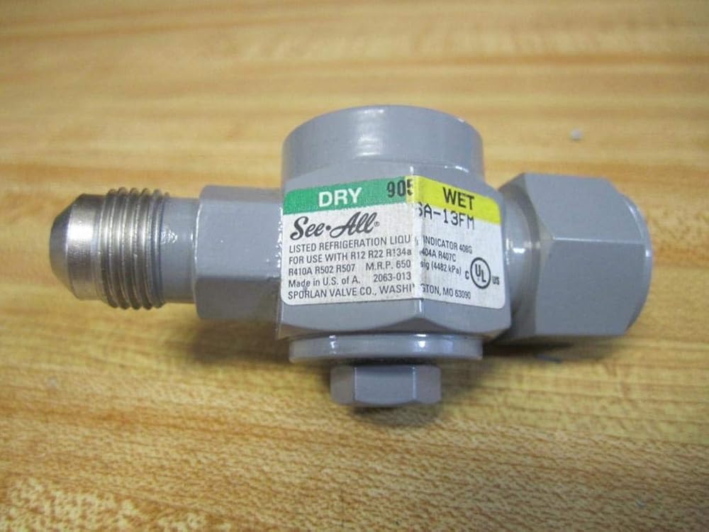 UPC:687472180654M.R.P. 650 psig (4482 kPa)Listed Refrigeration Liquid Indicator 408GFor use with R12, R22. R134a, R404A, R407C, R410A, R502, R5073/8" SAE Male /3/8" SAE Female