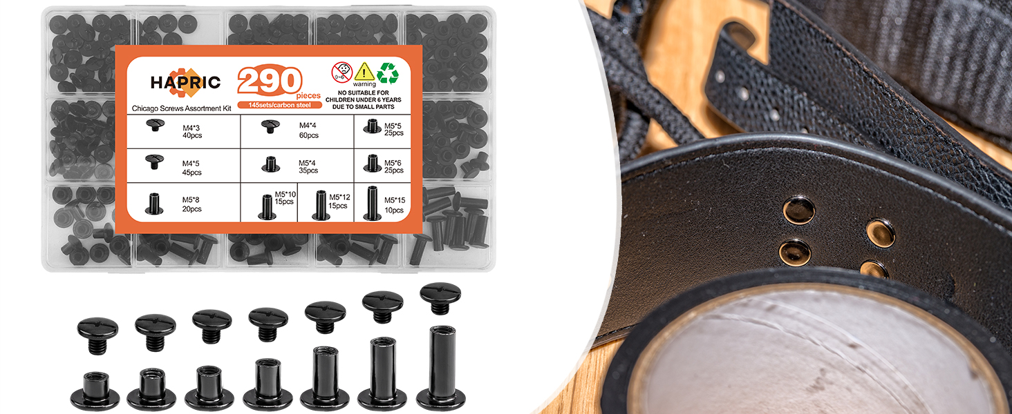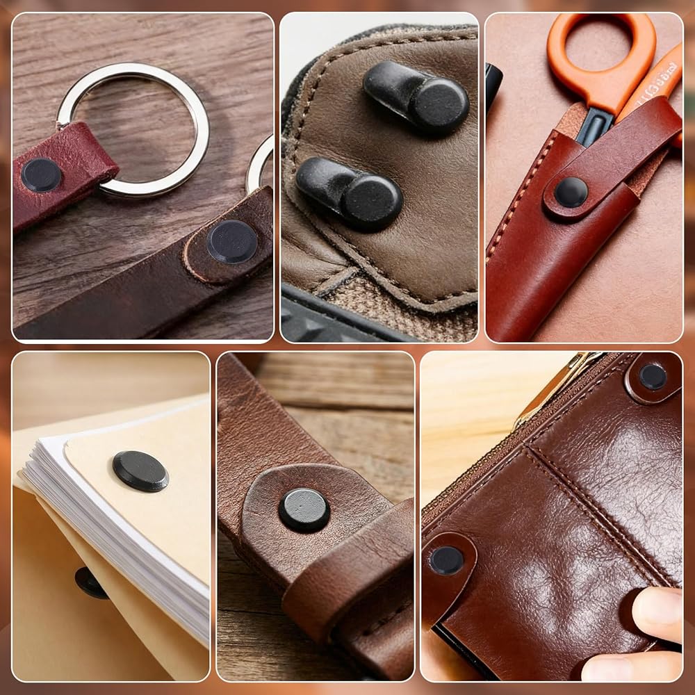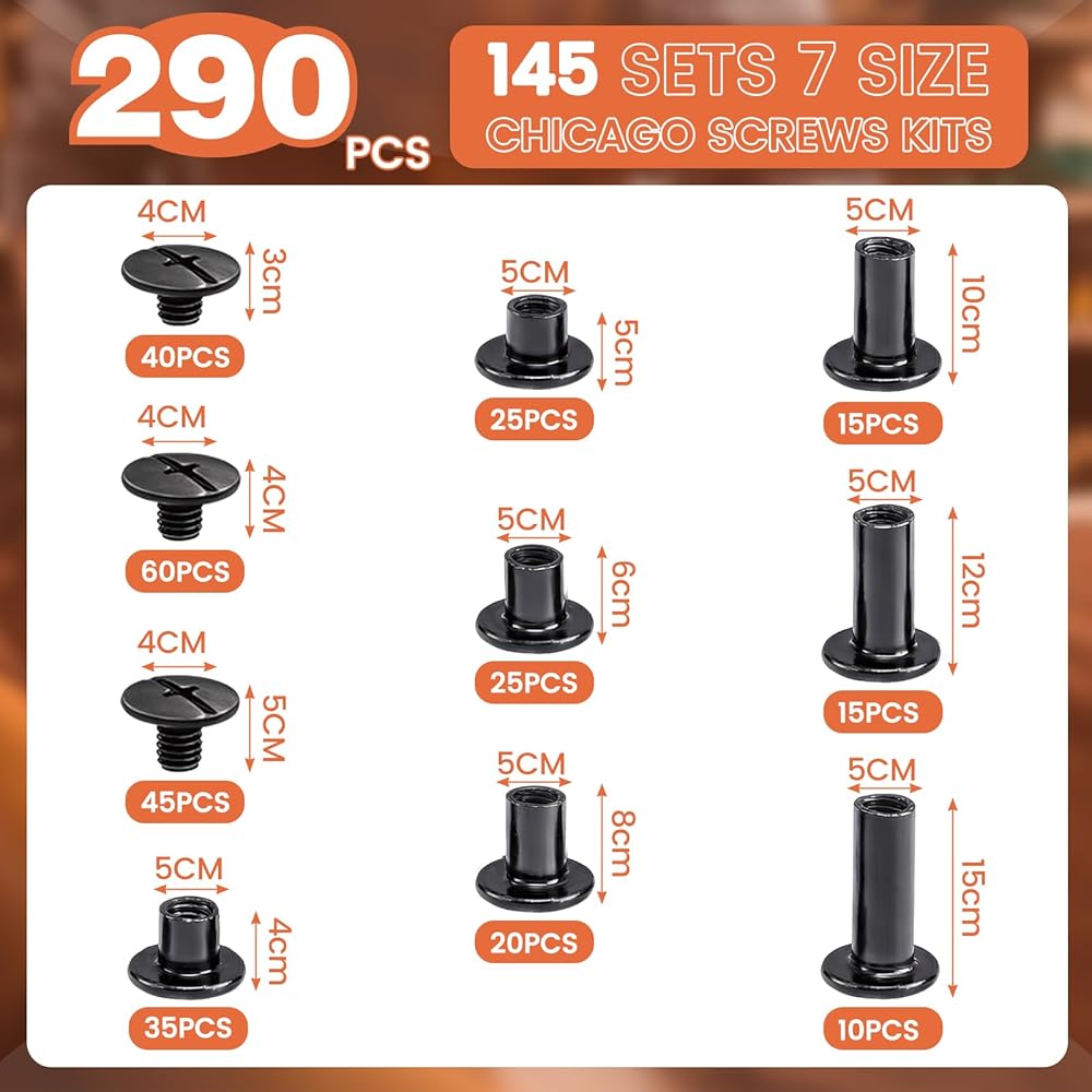 7 أحجام متعددة الاستخدامات: تتضمن هذه الحزمة القيمة 145 مجموعة من البراغي والأعمدة، وتتميز بـ 7 أحجام عملية M5 (4، 5، 6، 8، 10، 12، 15 ملم) للتعامل مع مجموعة واسعة من السُمك، من الأحزمة والمحافظ إلى تجليد الكتب والحقائب.