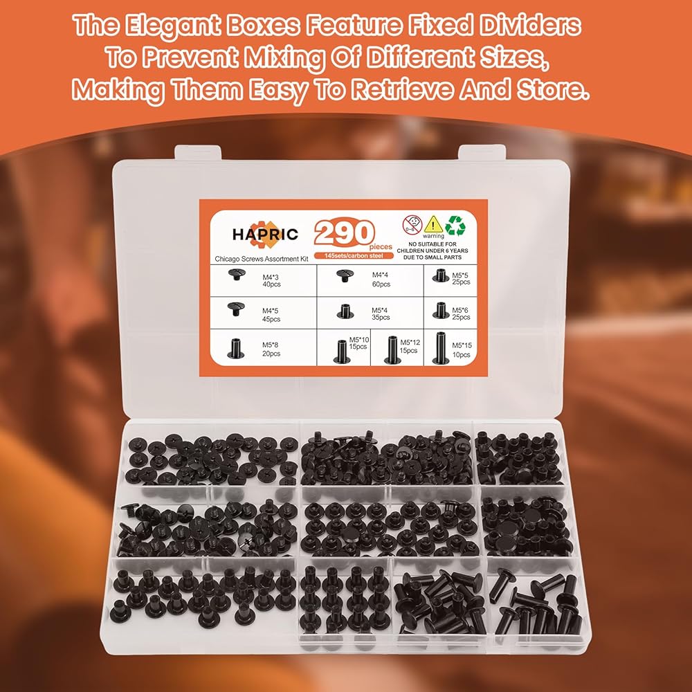 تخزين منظم ومحمول: يتم فرز براغي شيكاغو بدقة حسب الحجم في علبة تخزين شفافة ومعززة. يحافظ الصندوق الذي تمت ترقيته على أجهزتك محمية ويسهل الوصول إليها، وهو مثالي لتنظيم مساحة العمل الخاصة بك أو أثناء التنقل.