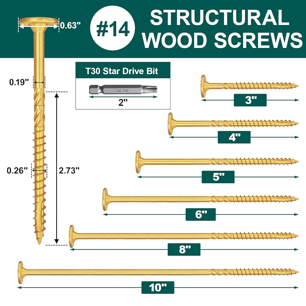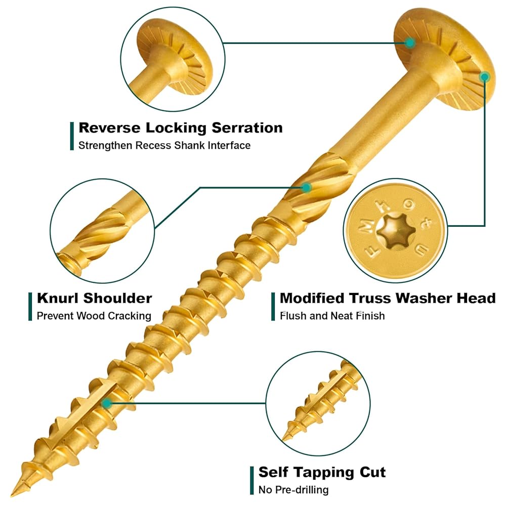 هيكل طويل الأمد: مصنوعة من الفولاذ الكربوني الفاخر، وقد صُممت البراغي الخشبية الخاصة بنا لتدوم طويلاً وهي متوافقة مع الخشب المعالج بـ ACQ لأداء طويل الأمد.