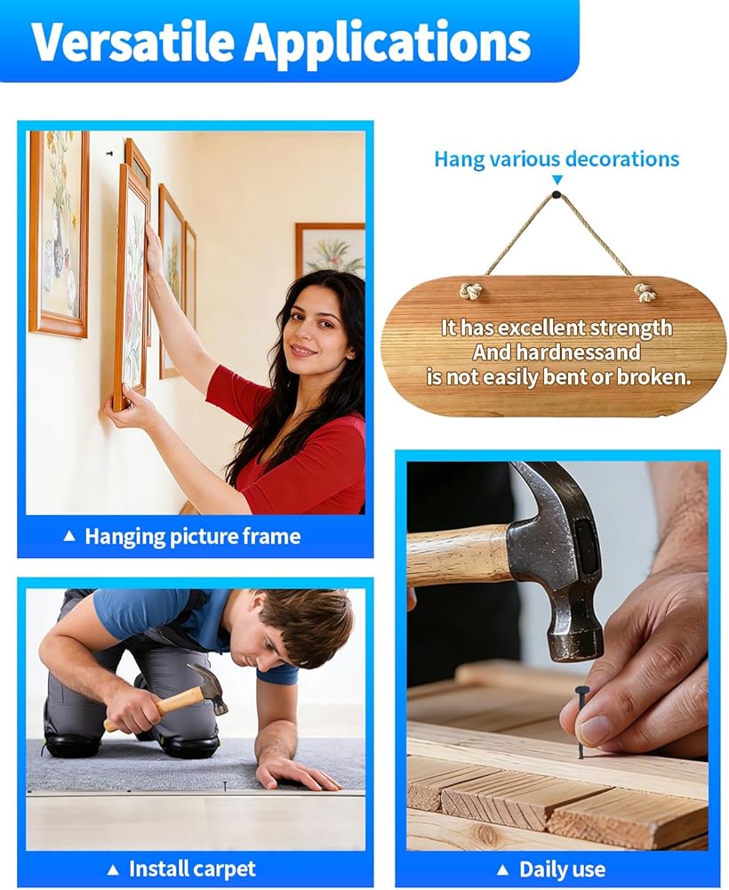User-Friendly Installation: These lightweight carpet tacks are incredibly easy to use, requiring no complex tools—simply hammer them into wood and similar materials. This accessibility makes them perfect for home DIY projects, ensuring that everyone can achieve professional results