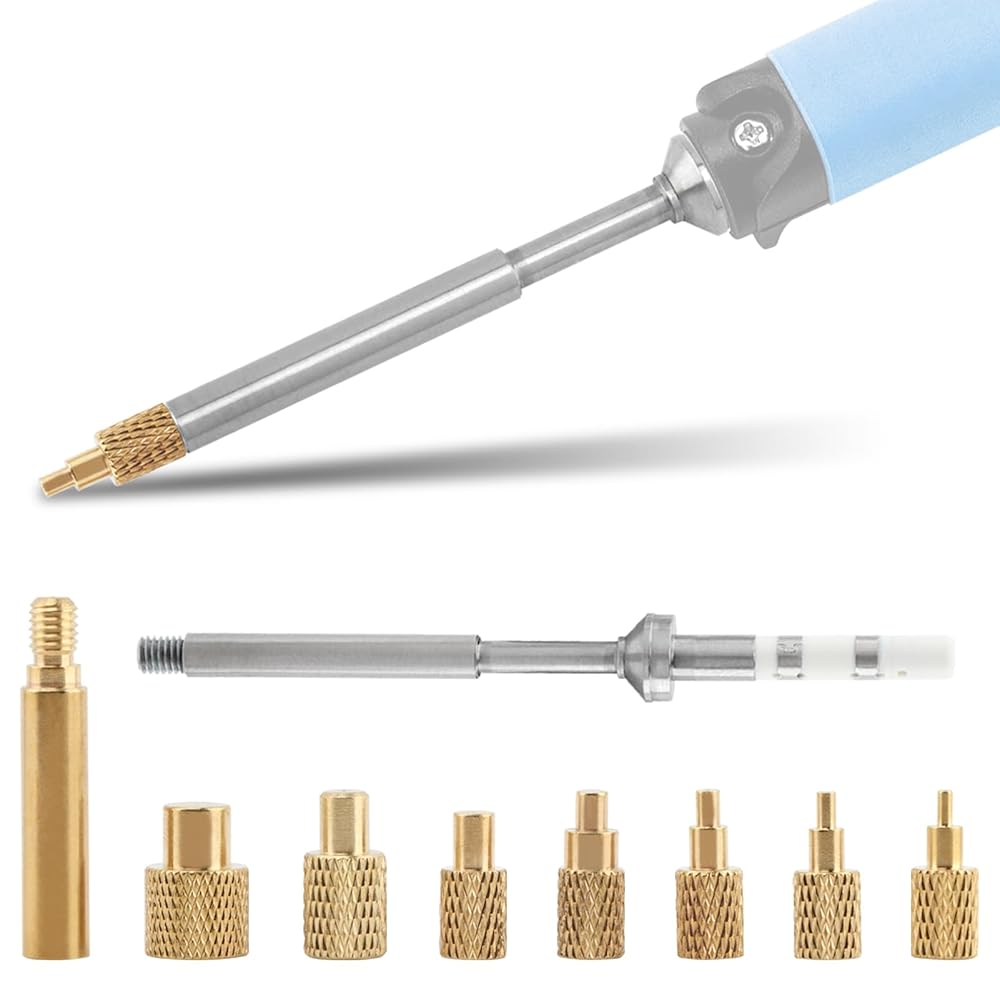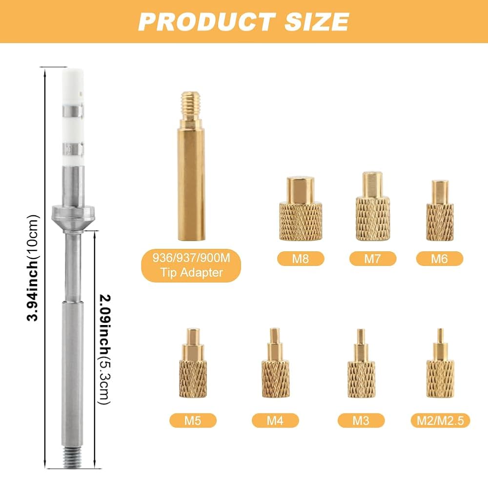 • 【EASY TO USE】Brass knurled nut thread inserts include M2, M2.5, M3, M4, M/5, M6, M8, the tip adapter allows you to easily switch different sizes of soldering iron tips, get accurate and clean thread insertion, reduce damage.