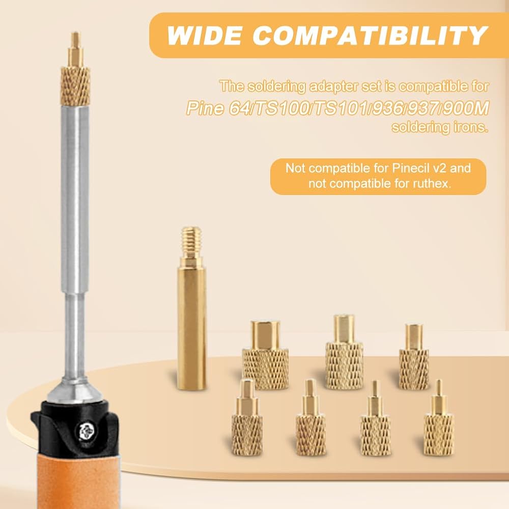 【MAIN FUNCTION】The soldering adapter set is compatible for Pine64/TS100/TS101/936/937/900M soldering irons, transforming them into portable heat insert pressing machine tool and expanding their functions.Not compatible for Pinecil v2 and not compatible forruthex.